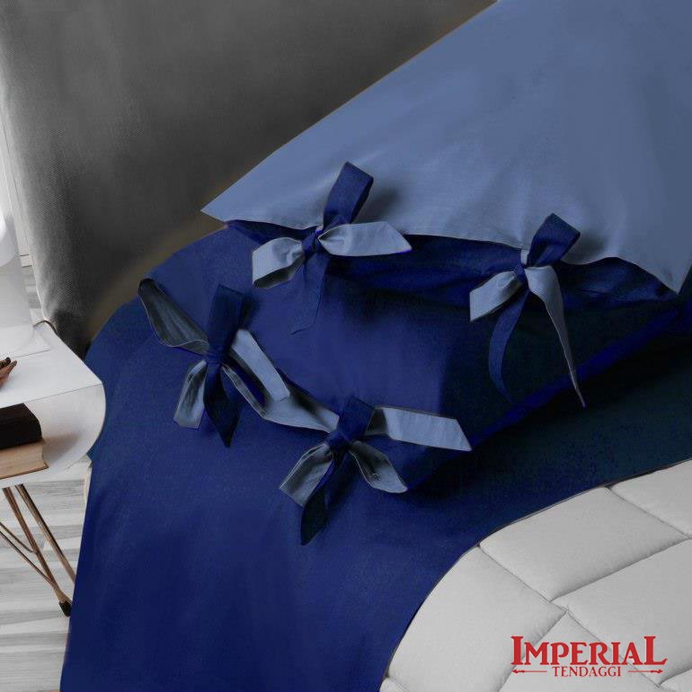 LENZUOLA MATRIMONIALE 2 POSTI CON FIOCCHETTI COMP: 100% COTONE PERCALLE COLORE CELESTE LENZUOLO SOPRA: 255X290 LENZUOLO SOTTO CON ANGOLI: 175X200 2 FEDERE 50X80 CON FIOCCHETTI