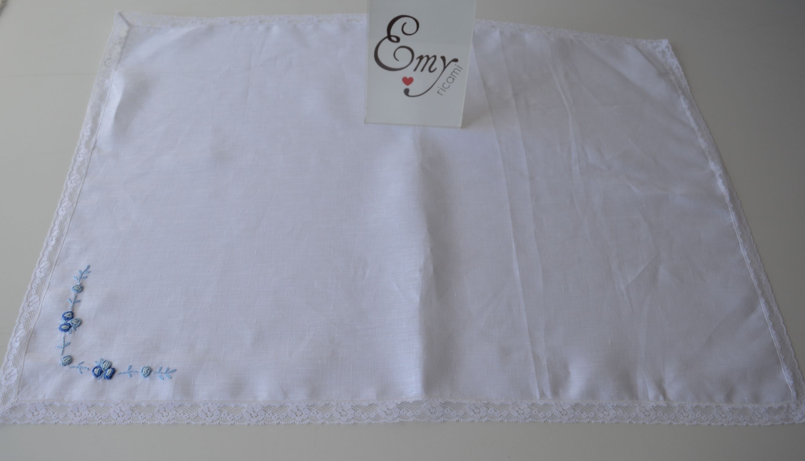 quadrato per nascita con ricami a mano punto vapore misura cm 70x50 composizione 100% lino rifinito con pizzo valencienne colore bianco con ricami bicolore celeste e blu su richiesta è possibile personalizzare il prodotto contattare i nostri info