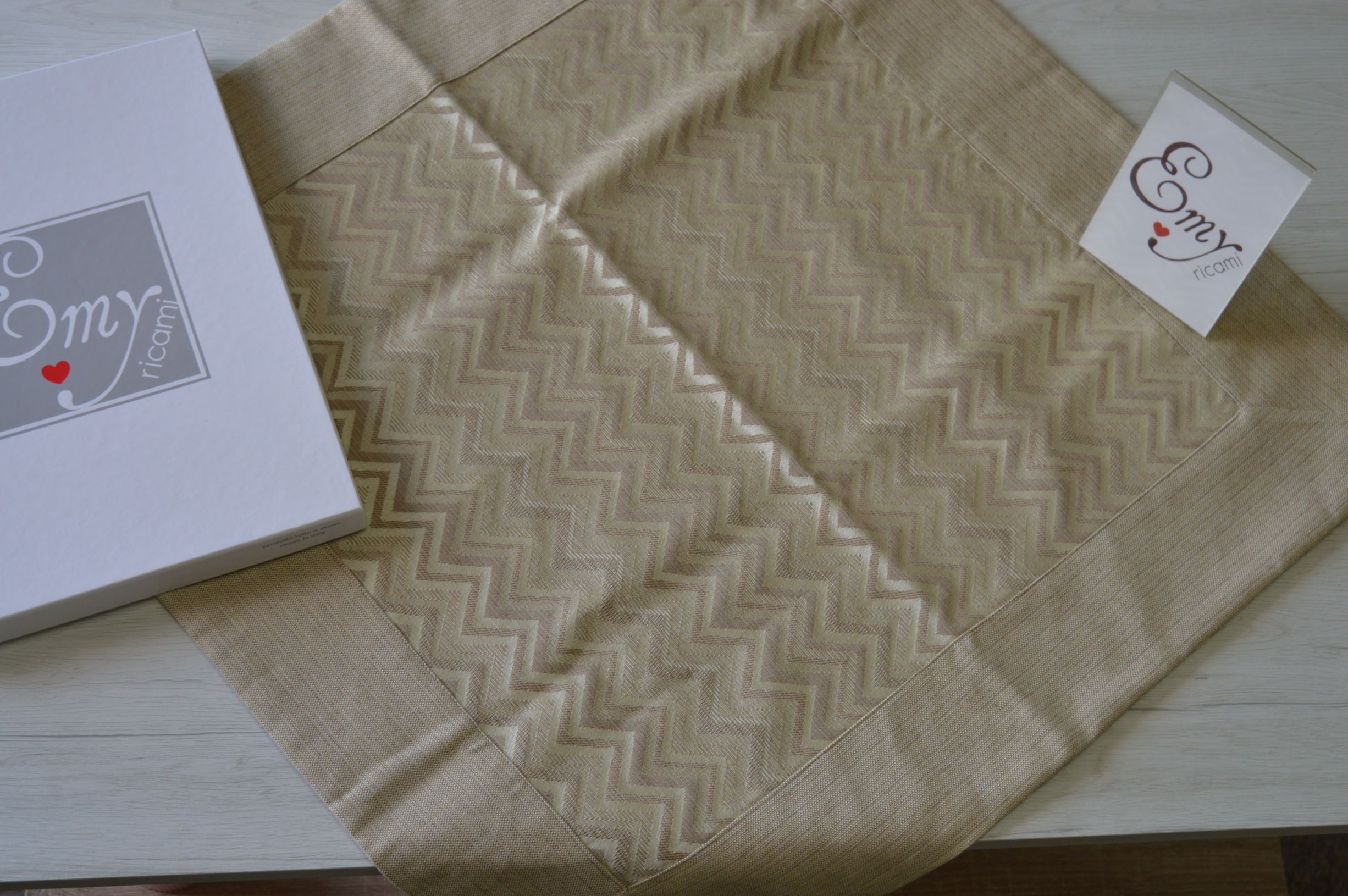 CENTROTAVOLA MIS CM 68x68 COMPOSIZIONE 65% COTONE 35% POLIESTERE CONFEZIONATO CON ANGOLI SQUADRATI COLORE BEIGE E TORTORA CONFEZIONATO IN UN ELEGANTISSIMA SCATOLA PERSONALIZZATA EMY RICAMI