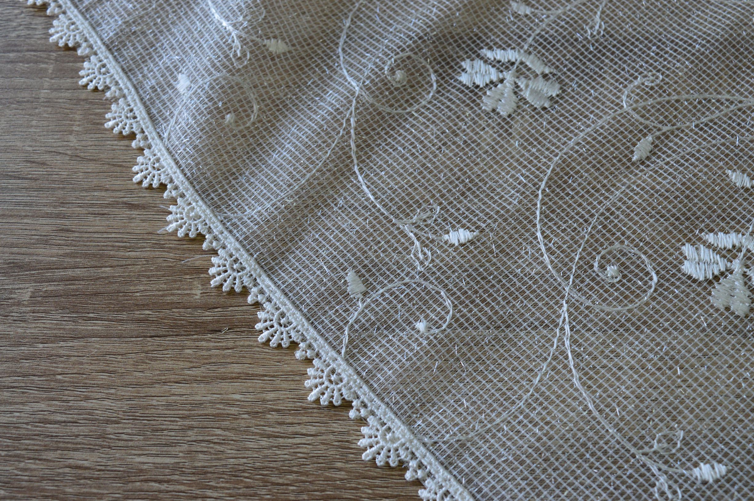 offerta centrotavola quadrato in tulle ricamato comp.100% poliestere mis cm 80x80 colore avorio confezionato in una elegante scatola personalizzata emy ricami
