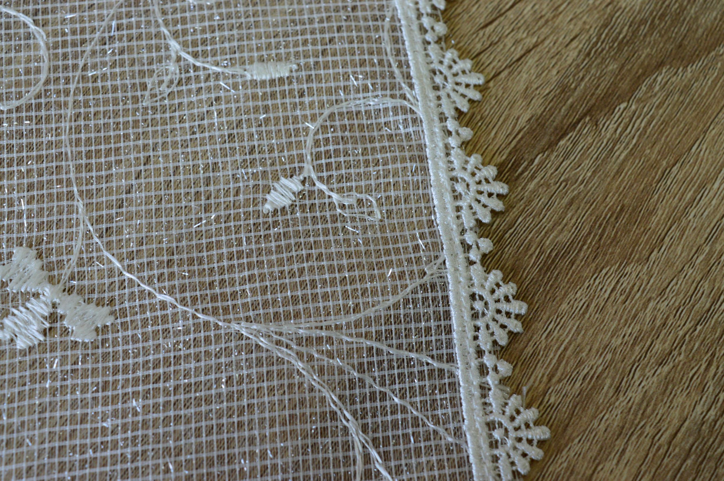 offerta centrotavola quadrato in tulle ricamato comp.100% poliestere mis cm 80x80 colore avorio confezionato in una elegante scatola personalizzata emy ricami