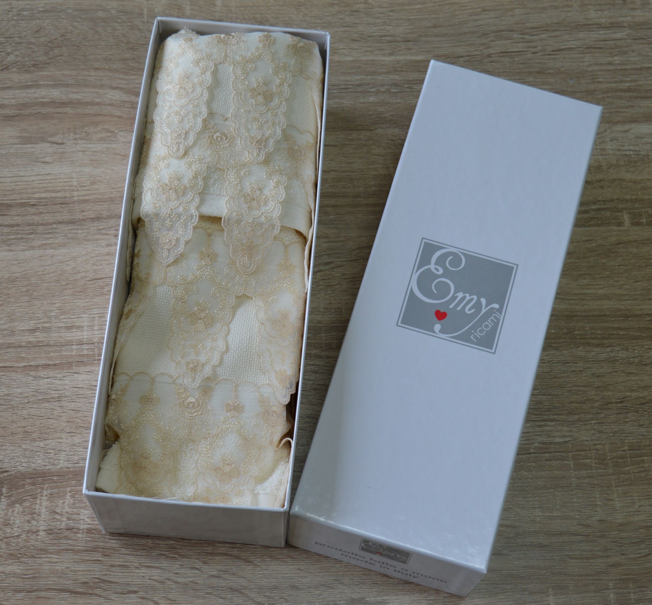 CONFEZIONATA IN UN ELEGANTISSIMA CONFEZIONE PERSONALIZZATA EMY RICAMI