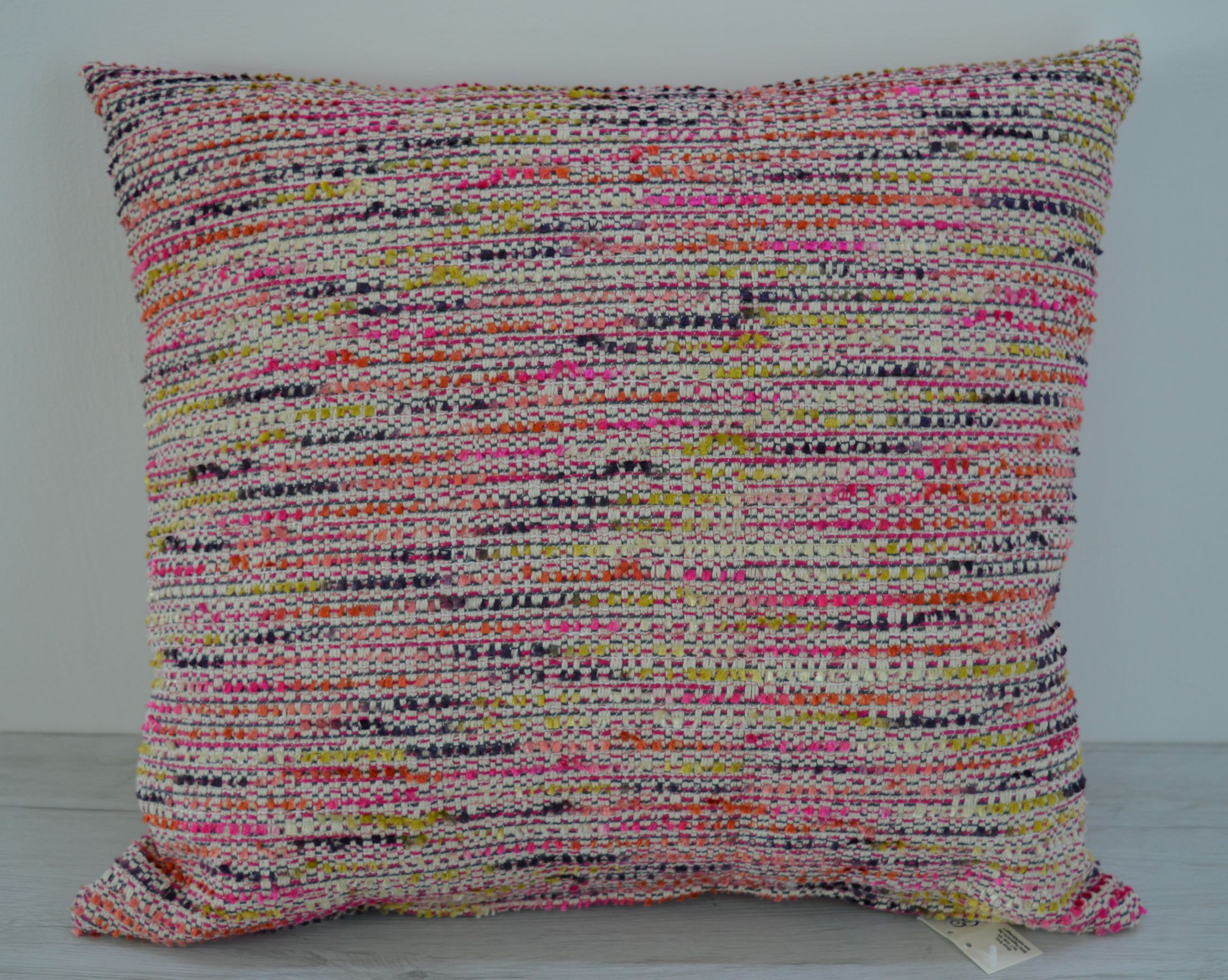 CUSCINO SFODERABILE MULTICOLOR COL FUXIA MISURA: CM 43X43 COMPOSIZIONE: 65% COTONE - 35% POLIESTERE IMBOTTITURA: 100% POLIESTERE ANALLERGICO