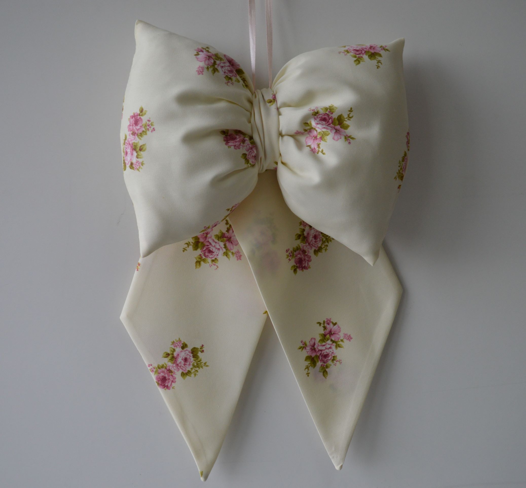 Fiocco imbottito artigianale di Emy ricami misura largo cm 30 alto cm 45 x10 di spessore composizione esterno100 cotone imbottitura 100% poliestere antiallergico colore avorio e fantasia multicolore