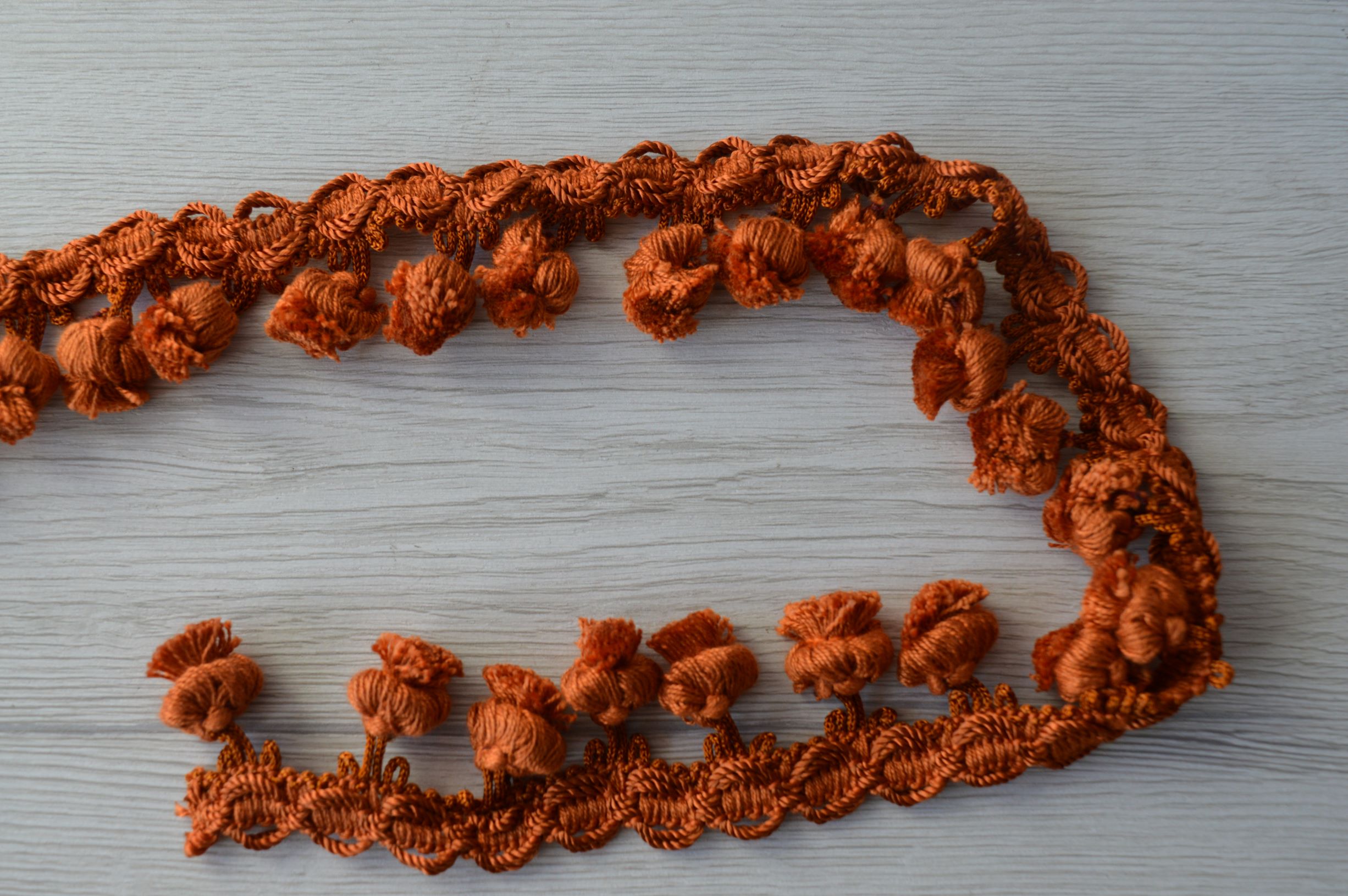CIPOLLINA PASSAMANERIA ALTA CM 4,00 COLORE TERRA DI SIENA ADATTA X CUSCINI TENDAGGI ECC... COMPOSIZIONE 100% POLIESTERE ?IL PREZZO SI INTENDE PER MT LINEARI