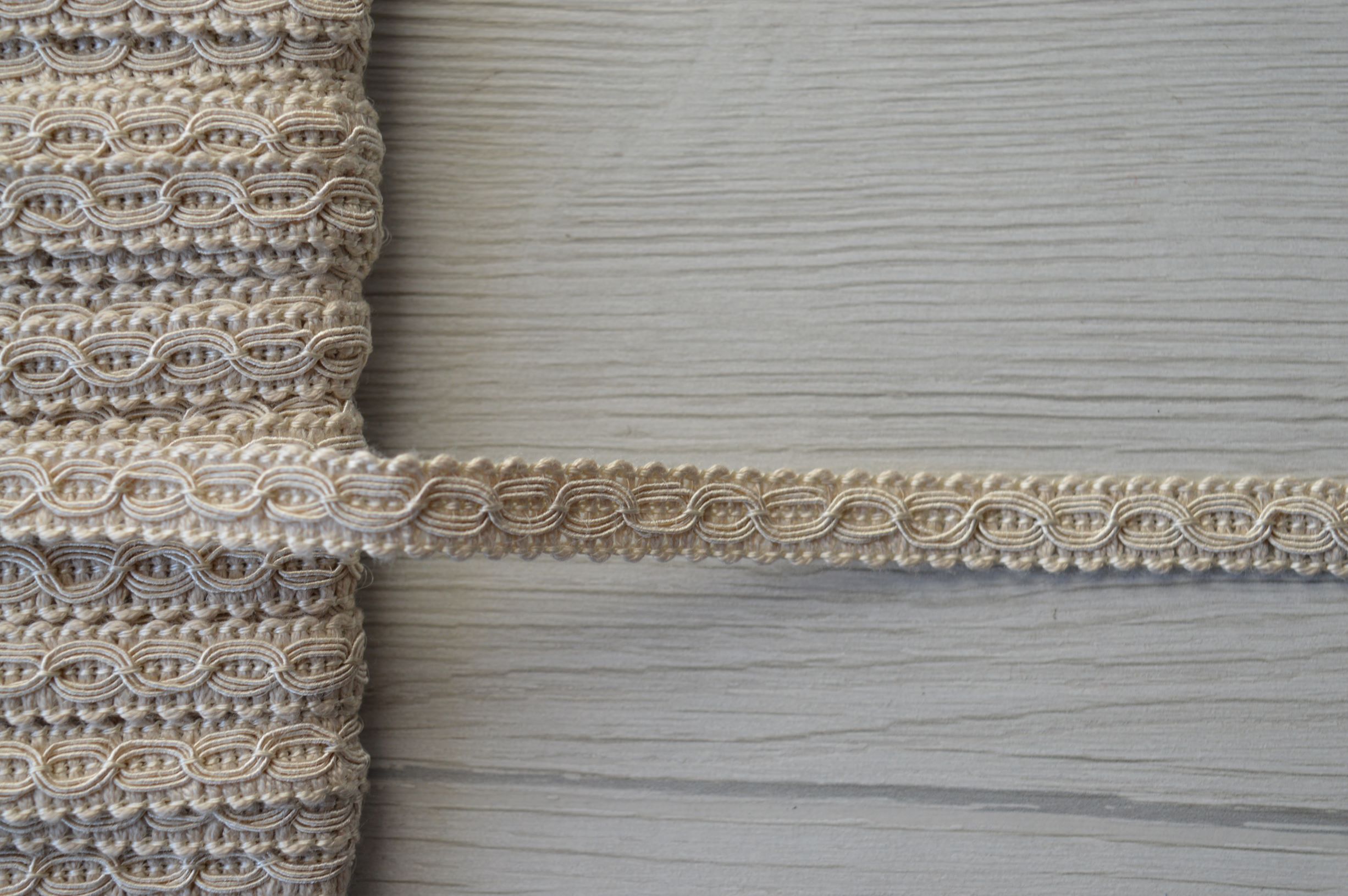 PACCHETTO PASSAMANERIA DI MT 10,00 ALTEZZA CM 1,00 COMPOSIZIONE 100% POLIESTERE COLORE BEIGE IL PACCHETTO è COMPOSTO DA MT 10 LINEARE