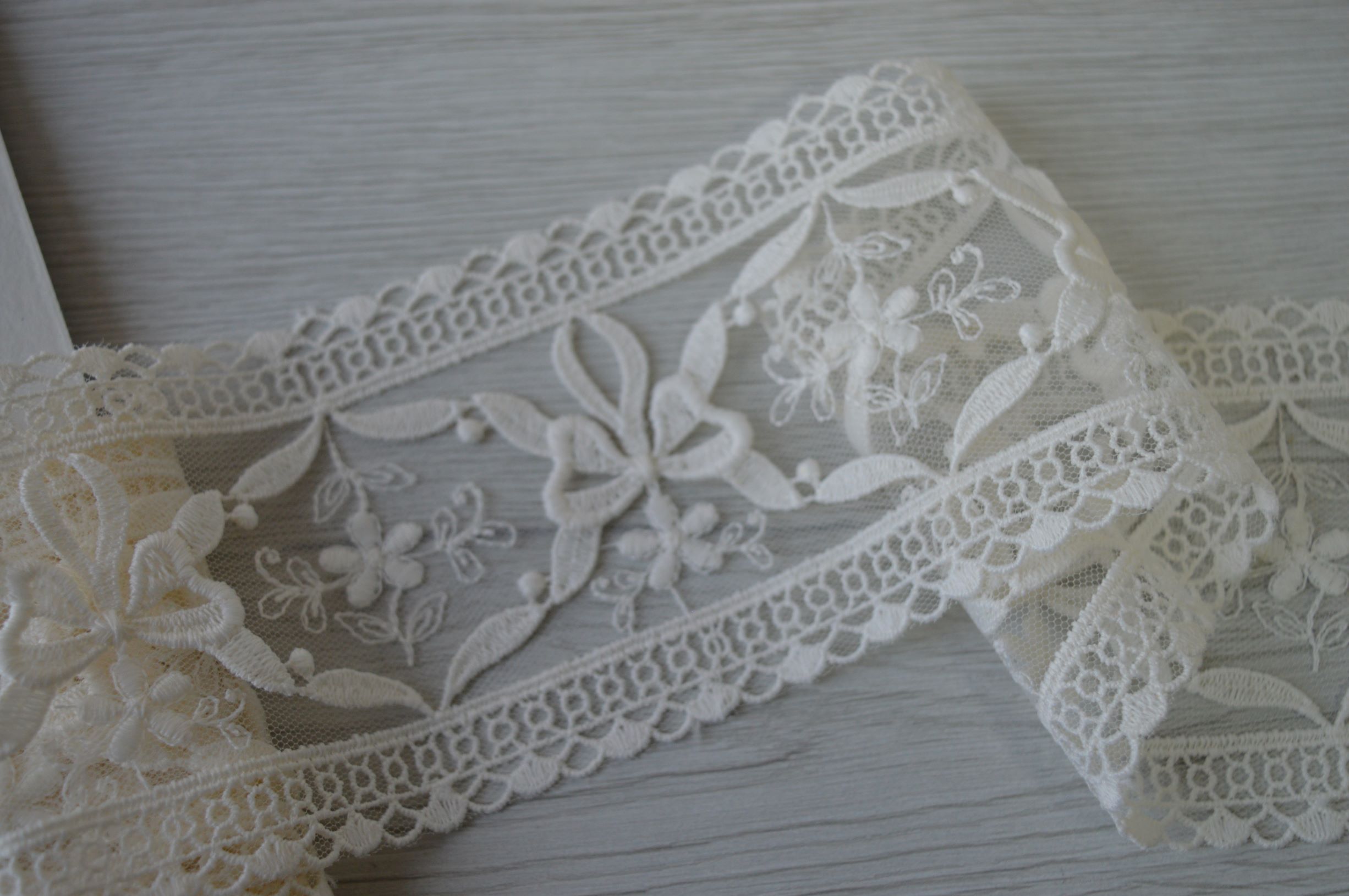 pregiatissimo pizzo macrame su base di tulle colore avorio alto cm 8 composizione 100% poliestere il prezzo si intende a mt lineari