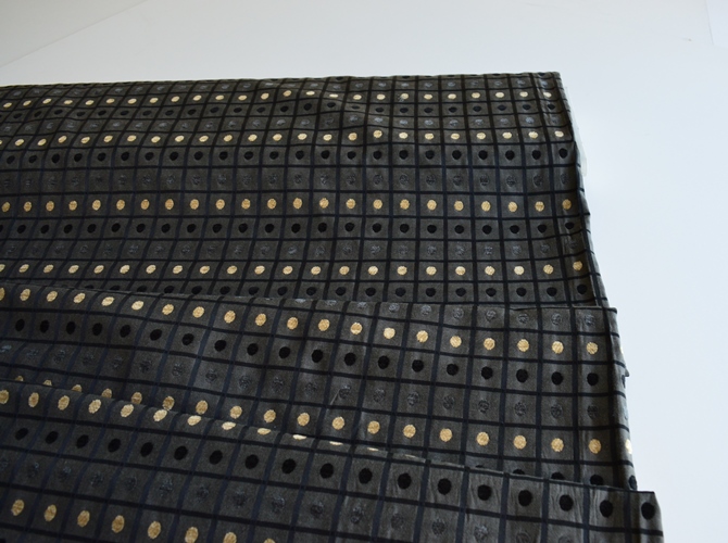 OFFERTISSIMA TAGLIO TESSUTO ART. NETTUNO COLORE: FONDO NERO CON POIS NERI, GRIGI E BEIGE MISURA: MT 4.00X2.80 COMPOSIZIONE: 65% COTONE - 35 % POLIESTERE TESSUTO ADATTO PER DIVANI, CUSCINI ECC...