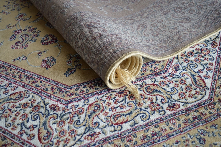 TAPPETO ZRABY MIS CM 140X190 A PELO RASATO DIS L304 STILE ORIENTALE CON UN EFFETTO LUCIDO SIMILE AI TAPPETI DI SETA NON SI ARRICCIA SOTTO I PIEDI COMPOSIZIONE VISCOSA 100% COLORE NAVY COLOR GOLD MADE IN BELGIO
