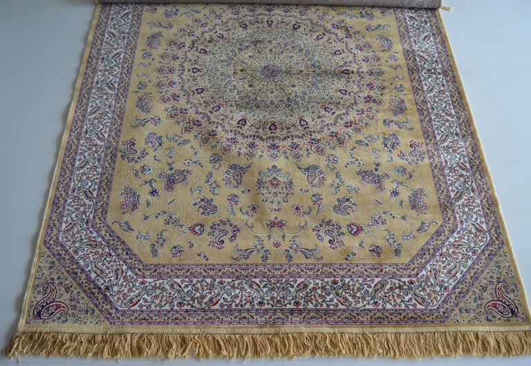 TAPPETO ZRABY MIS CM 140X190 A PELO RASATO DIS L304 STILE ORIENTALE CON UN EFFETTO LUCIDO SIMILE AI TAPPETI DI SETA NON SI ARRICCIA SOTTO I PIEDI COMPOSIZIONE VISCOSA 100% COLORE NAVY COLOR GOLD MADE IN BELGIO