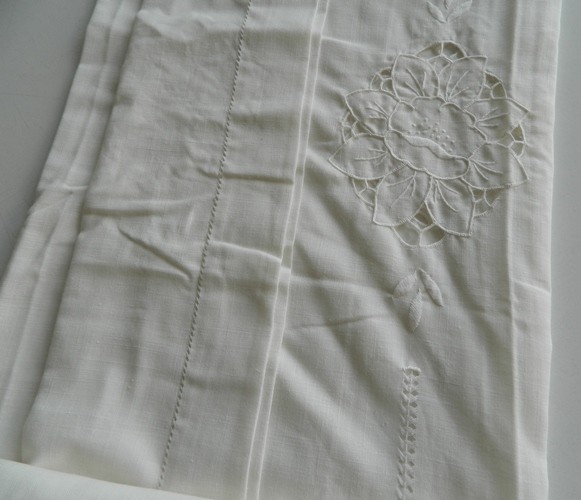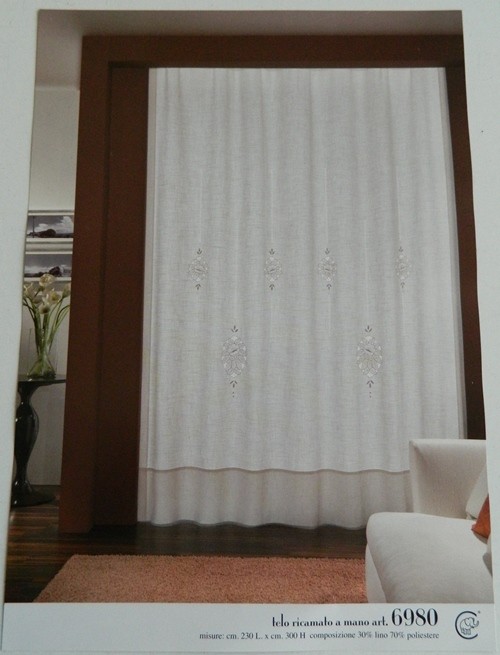 OFFERTA TELO TENDA RICAMATO LINO POLIESTERE ART 6980 COLORE BIANCO LATTE
