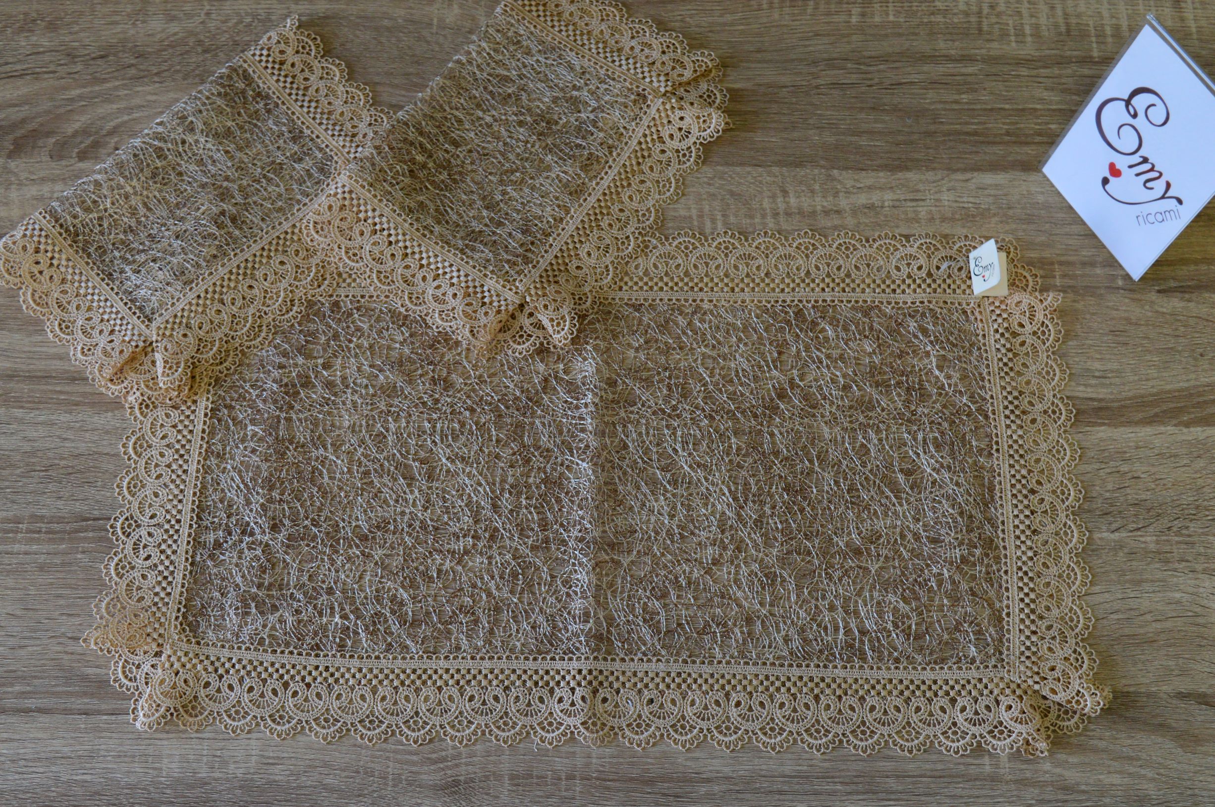 offerta tris centri di rete e macramè col beige e marrone art Lisotta