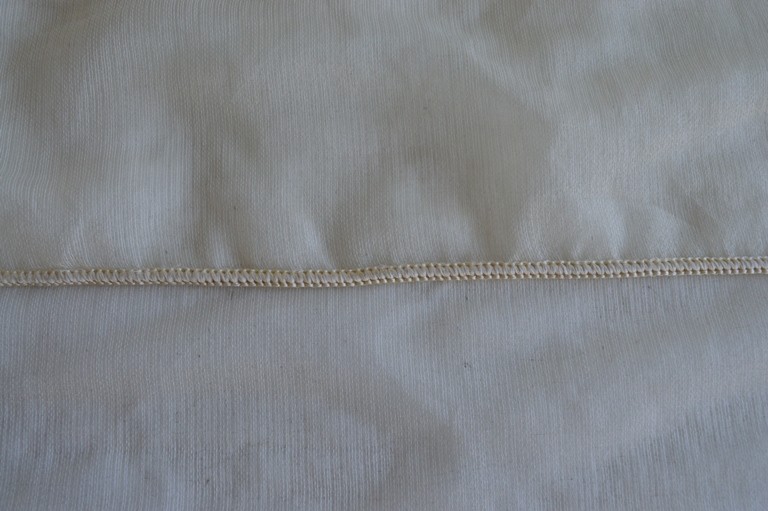 TAGLIO TENDA ART. AGATA COLORE: AVORIO CON INSERTI IN ARGENTO A FASCE ORIZZONTALI MISURA: ALTEZZA MT 3.00 X LARGHEZZA MT 6,50 TESSUTO SEMITRASPARENTE SI LA VA E NON SI STIRA
