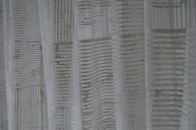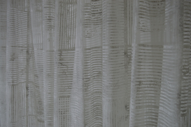 tenda confezionata in tessuto devorè dimensioni larga mt 2x 2,87 alta tessuto utilizzato mt 4,00 colore grigio tortora tessuto 100% poliestere piombata sotto comoda perche si lava e non si stira
