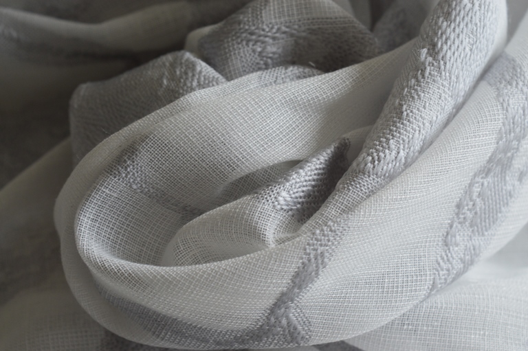 TAGLIO TENDA ART PENELOPE FB 0051 0301 LARGA MT 4,00 X 3,00 ALTA PIOMBATA SOTTO FONDO COLORE NATURALE CON FANTASIA GRIGIO COMPOSIZIONE 100% POLIESTERE TESSUTO SEMITRASPARENTE