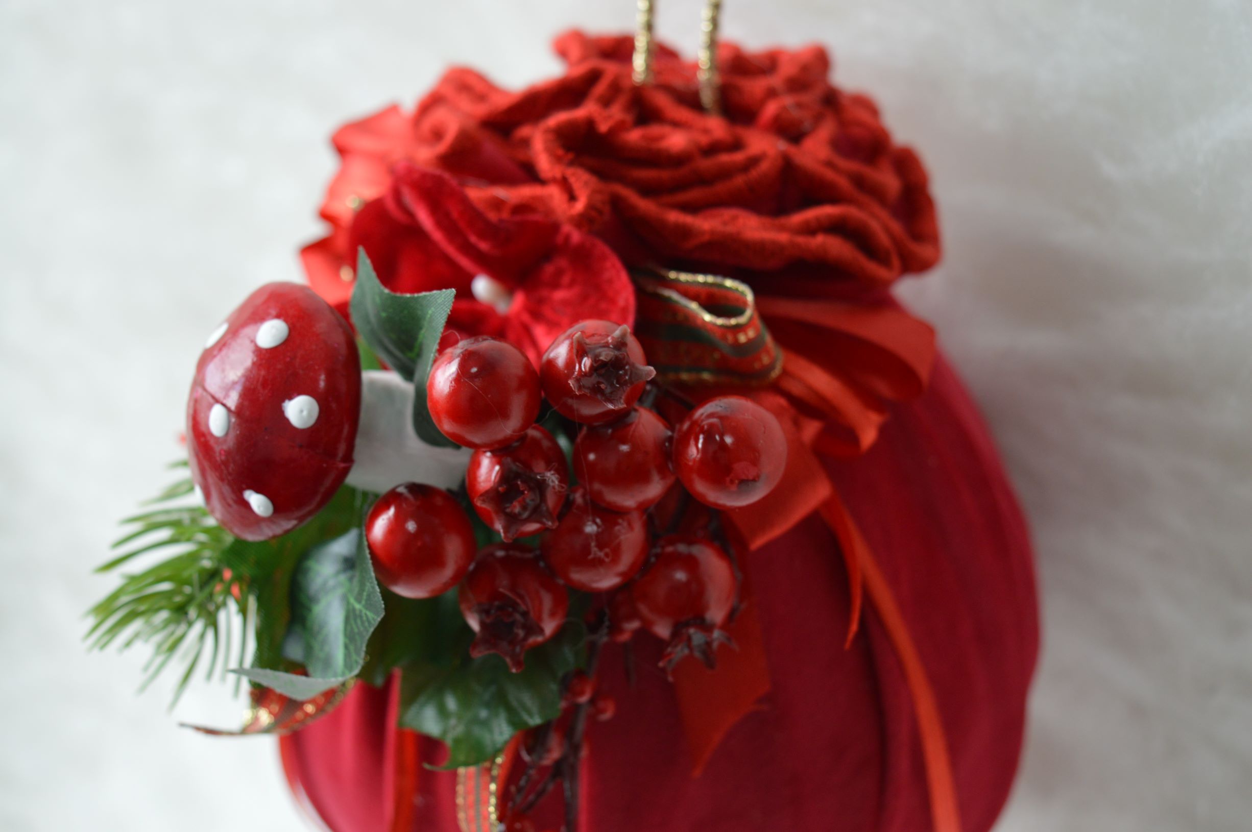 palle natalizie artigianale di emy ricami composizione velluto 100% poliestere colore rosso dimensioni diametro cm 15x20 alto peso gr 105