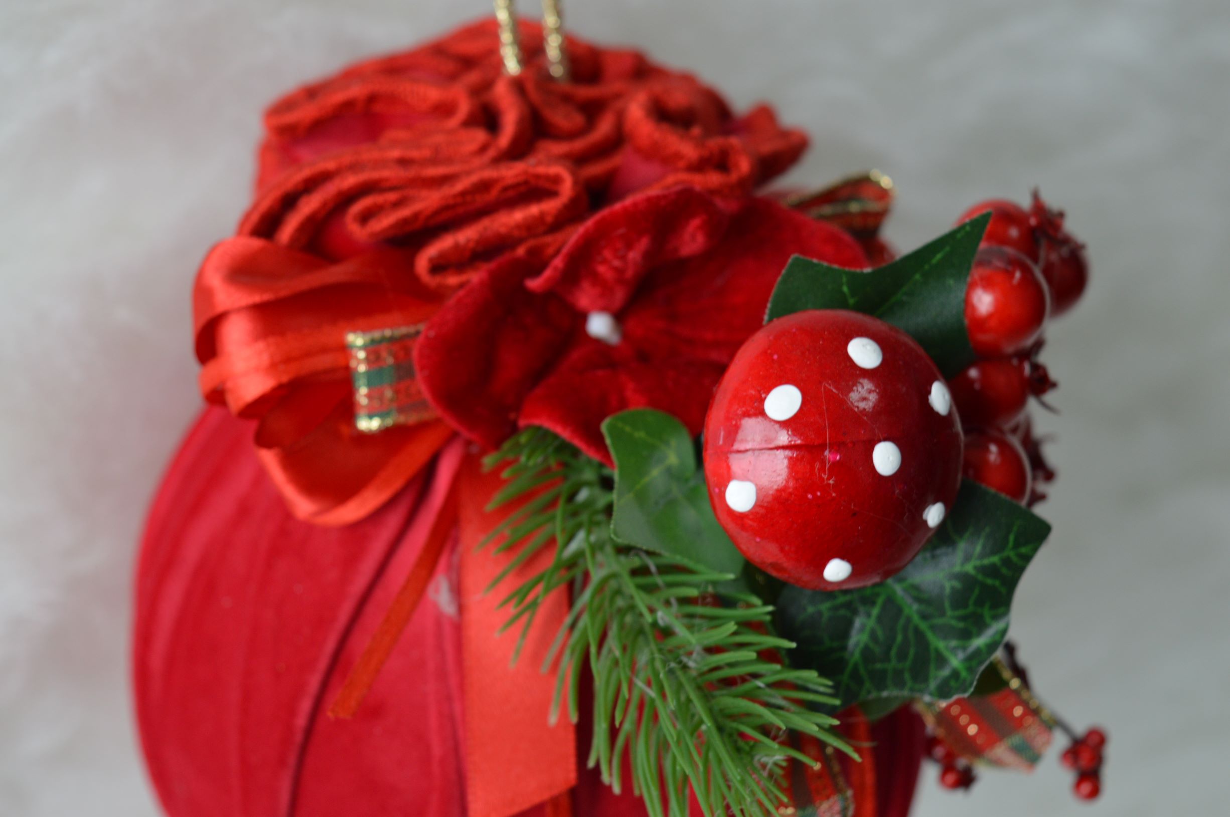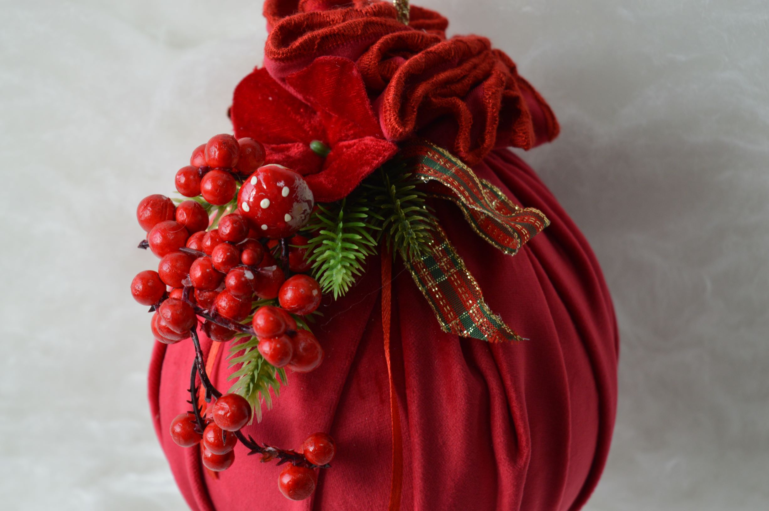 palle natalizie artigianale di emy ricami composizione velluto 100% poliestere colore rosso dimensioni diametro cm 15x20 alto peso gr 105