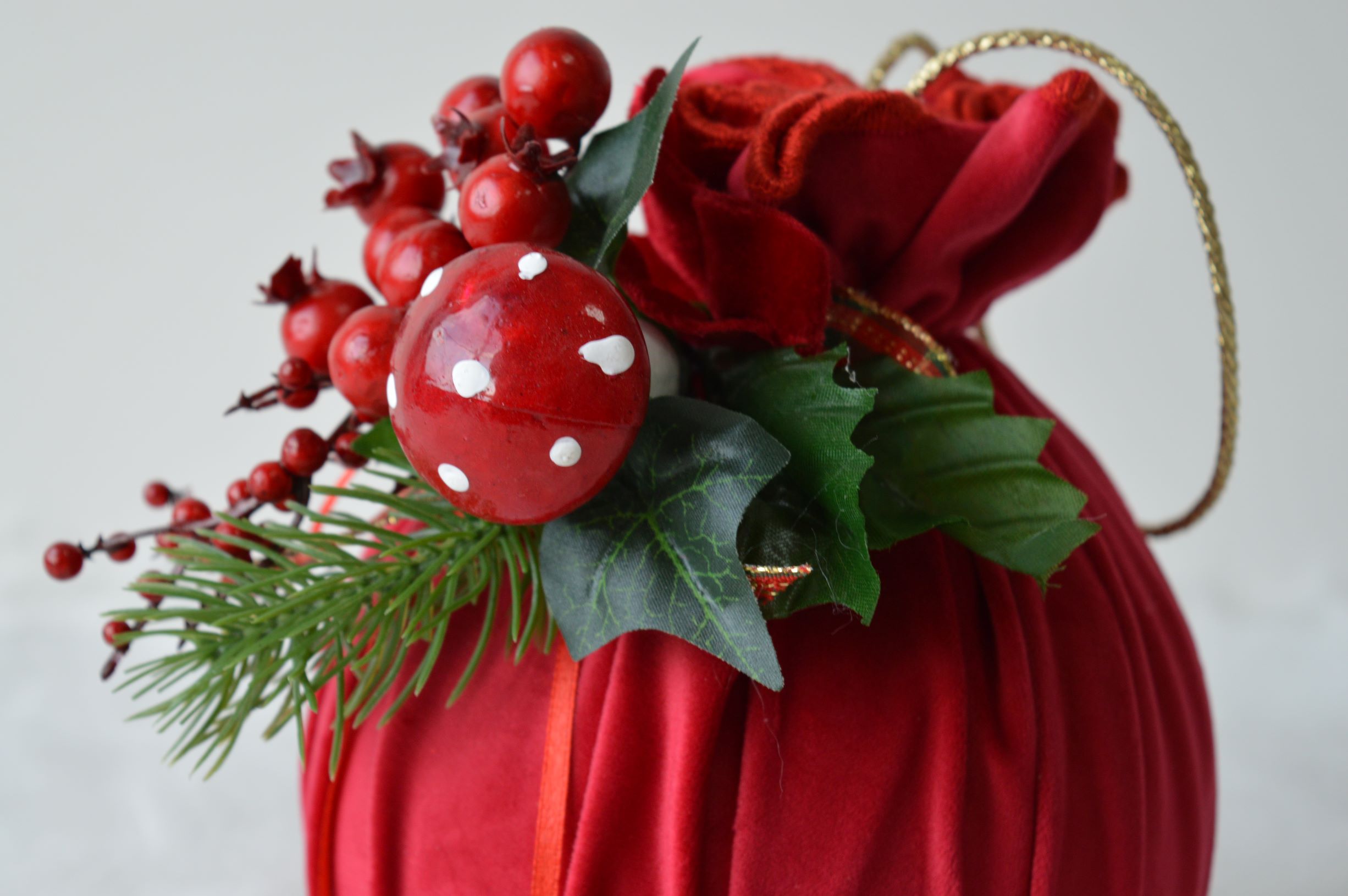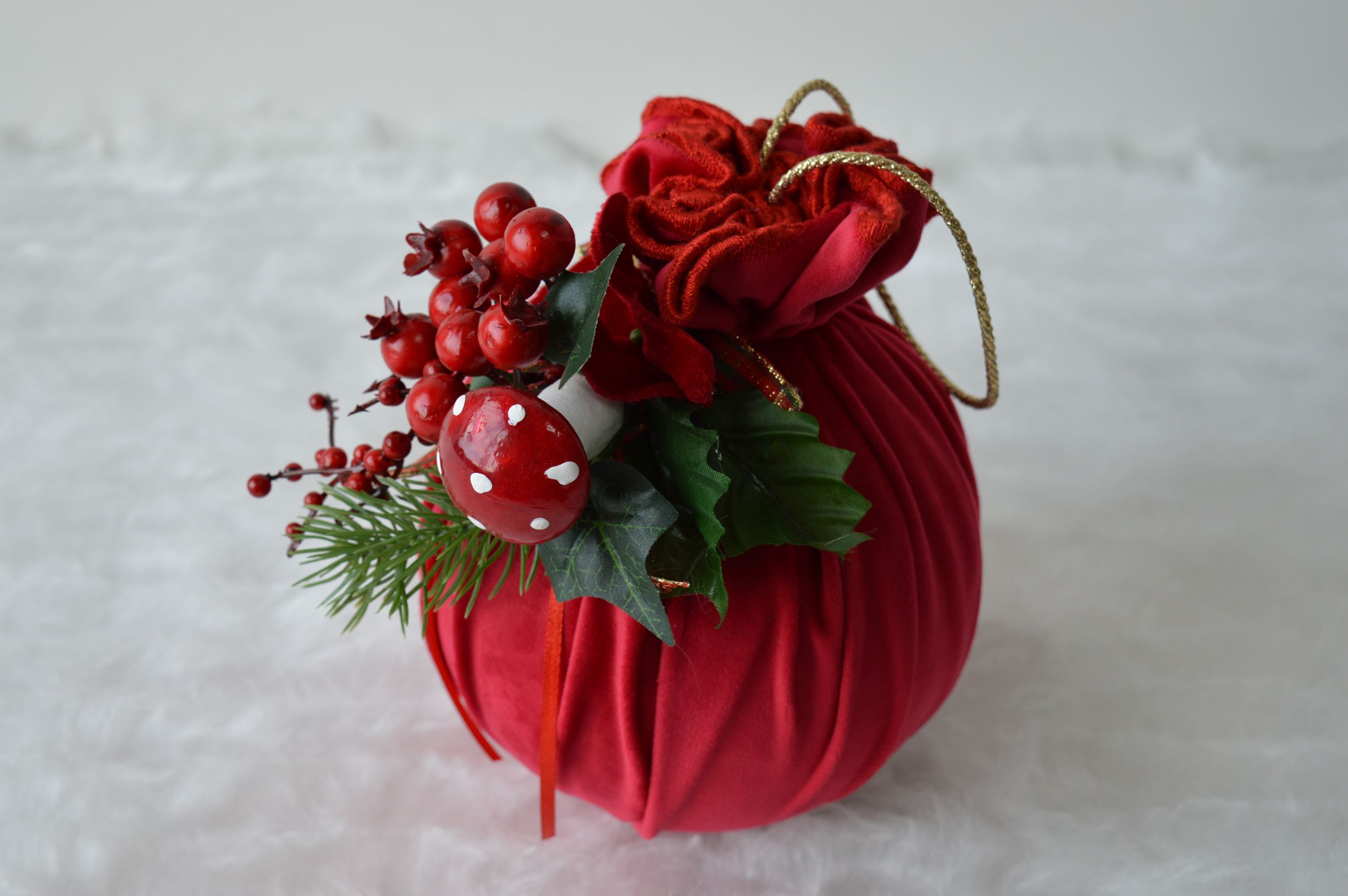 palla natalizia artigianale di emy ricami composizione velluto 100% poliestere colore rosso dimensioni diametro cm 15x20 alto peso gr 105
