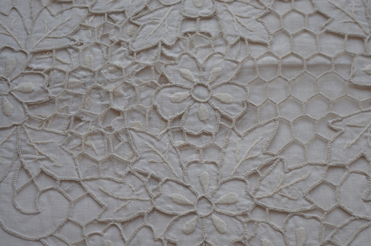 PANNELLO TENDA RICAMATO INTAGLIATO COLORE BEIGE MISURA LARGO CM210X 300H COMPOSIZIONE 100% PURO LINO ADATTO PER BALCONE O FINESTRA A DUE O TRE ANTE