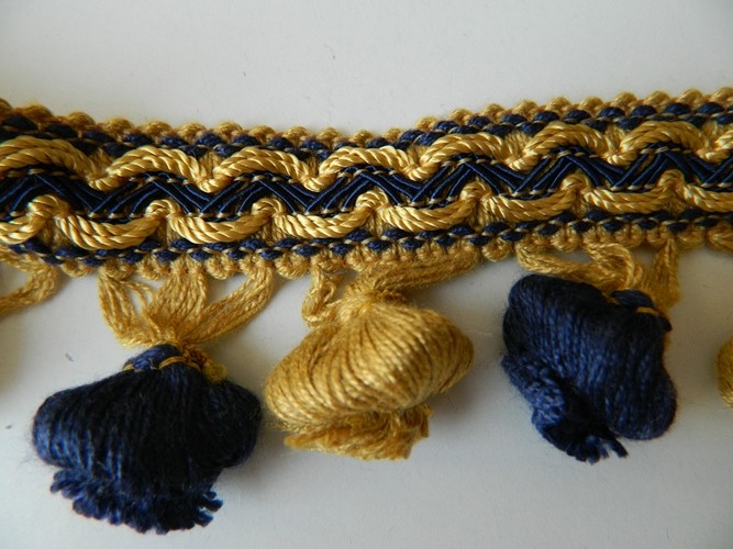 PASSAMANERIA CIPOLLINA ALTA 4 CM COMPOSIZIONE POLIESTERE ADATTA A COPERTE, TENDAGGI,VESTITI D'EPOCA ECC.. COLORE BLU E GIALLO IL PREZZO SI INTENDE IN MT LINEARI VISITATE IL NOSTRO NEGOZIO TROVERETE UN VASTO ASSORTIMENTO