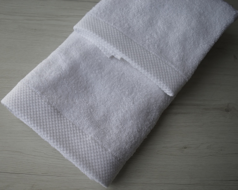 coppia asciugamano grande e piccola colore bianco composizione 100% cotone misura piccola cm 57x38 grande cm 103x56 peso 500gr al mtq rifinita in basso con greca da 3cm