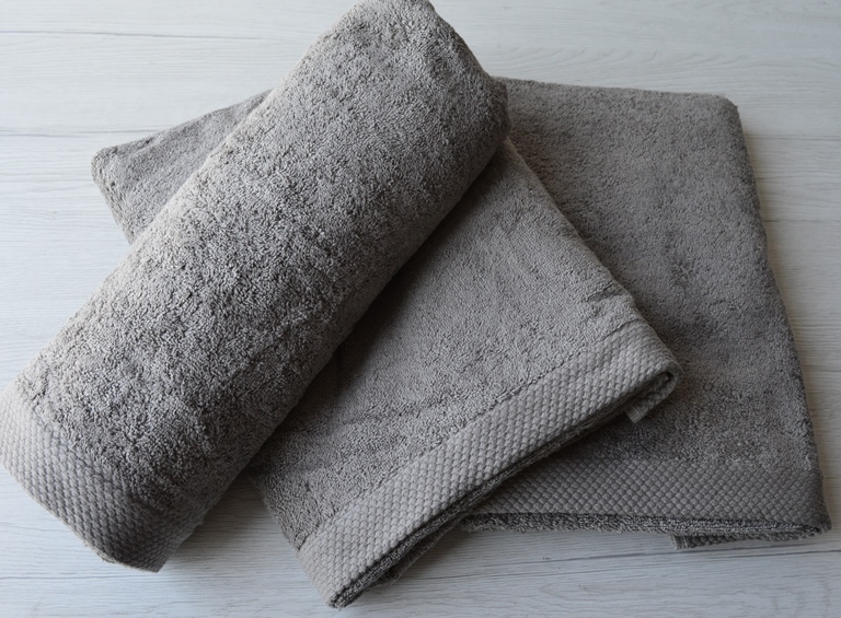 coppia asciugamano grande e piccola az2 colore grigiotortora composizione 100% cotone misura piccola cm 57x38 grande cm 103x56 peso 500gr al mtq rifinita in basso con greca da 3cm