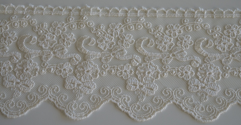 PIZZO TULLE RICAMATO ART. LIONE ALTO : CM 10 COLORE: AVORIO COMPOSIZIONE : BASE TULLE RICAMATO 100% POLIESTERE IL PREZZO E IL QUANTITATIVO SI INTENDE IN MT LINEARI