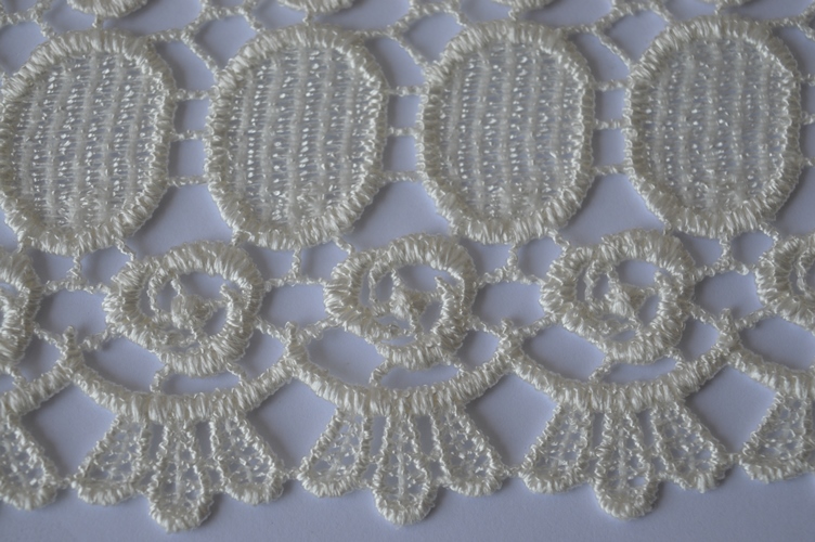 PIZZO MACRAME A METRAGGIO ART. TRIPOLI ALTO CM 9 COLORE : AVORIO COMPOSIZIONE : MACRAME 100% POLIESTERE IL PREZZO E IL QUANTITATIVO EQUIVALE A MT LINEARI .