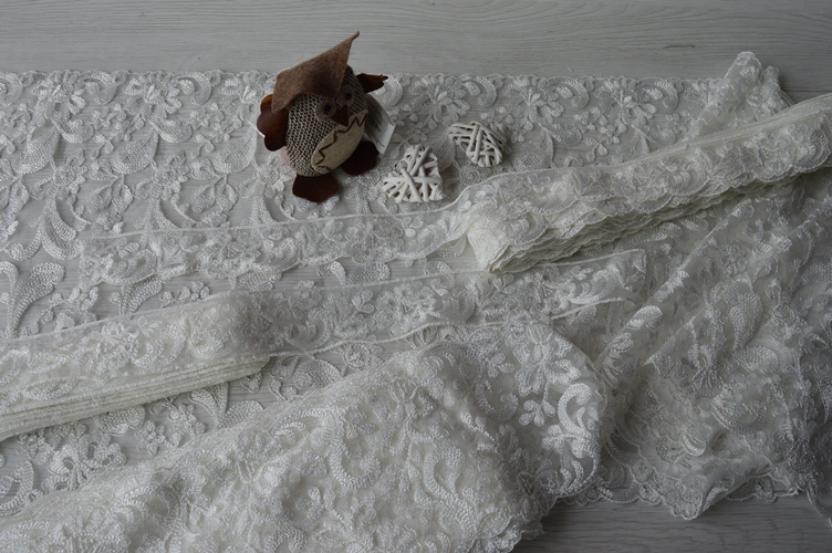 PIZZO TULLE RICAMATO ART 1993 COLORE AVORIO COMPOSIZIONE 100% POLIESTERE DISPONIBILE IN DIVERSE MISURE ALTEZZA GRANDE CM 35 MEDIO CM 13 INTRAMEZZO CM4,5 FINALE PICCOLO CM 4 IL PREZZO E IL QUANTITATIVO EQUIVALGONO A MT LINEARE I METRAGGIO è TAGLIATO INTERO FINO ALLA DISPONIBILITA DELLA PEZZETTA