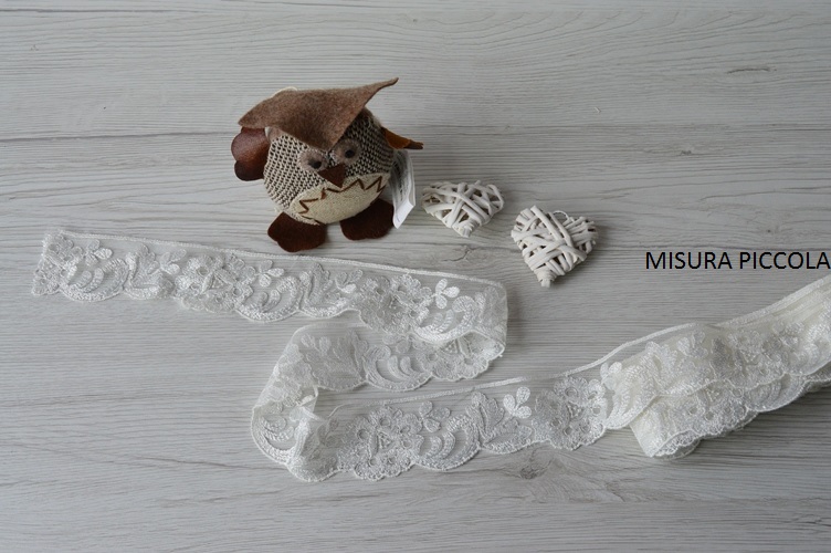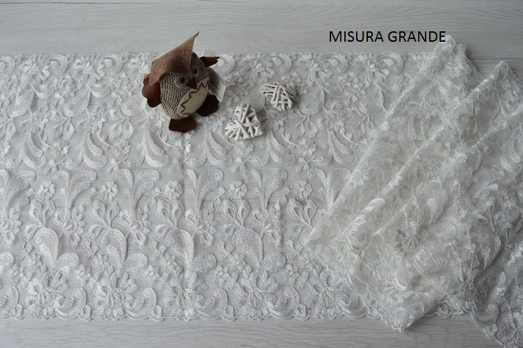 PIZZO TULLE RICAMATO ART 1993 COLORE AVORIO COMPOSIZIONE 100% POLIESTERE DISPONIBILE IN DIVERSE MISURE ALTEZZA GRANDE CM 35 MEDIO CM 13 INTRAMEZZO CM4,5 FINALE PICCOLO CM 4 IL PREZZO E IL QUANTITATIVO EQUIVALGONO A MT LINEARE I METRAGGIO è TAGLIATO INTERO FINO ALLA DISPONIBILITA DELLA PEZZETTA