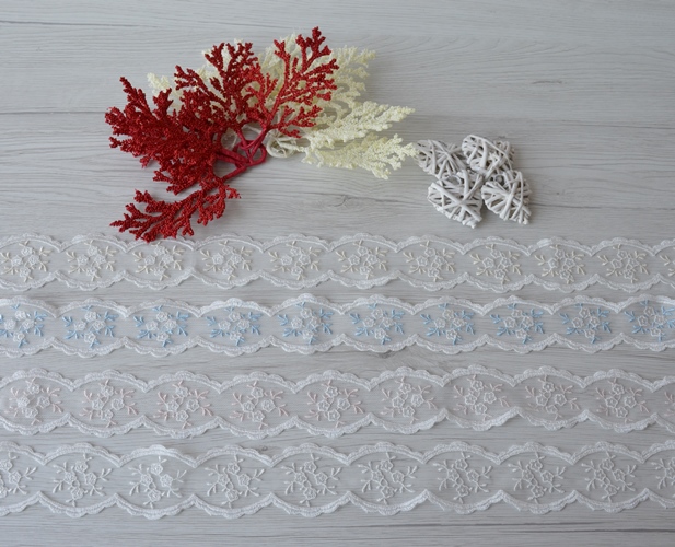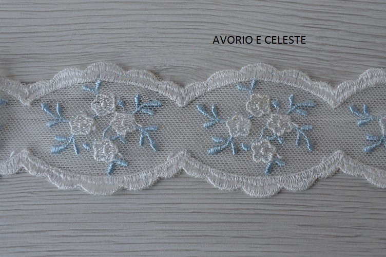 PIZZO TULLE RICAMATO ART MAGIA 3212 ALTEZZA CM 5,00 COMPOSIZIONE 100% POLIESTERE IL PREZZO E IL QUANTITATIVO EQUIVALGONO A MT LINEARI