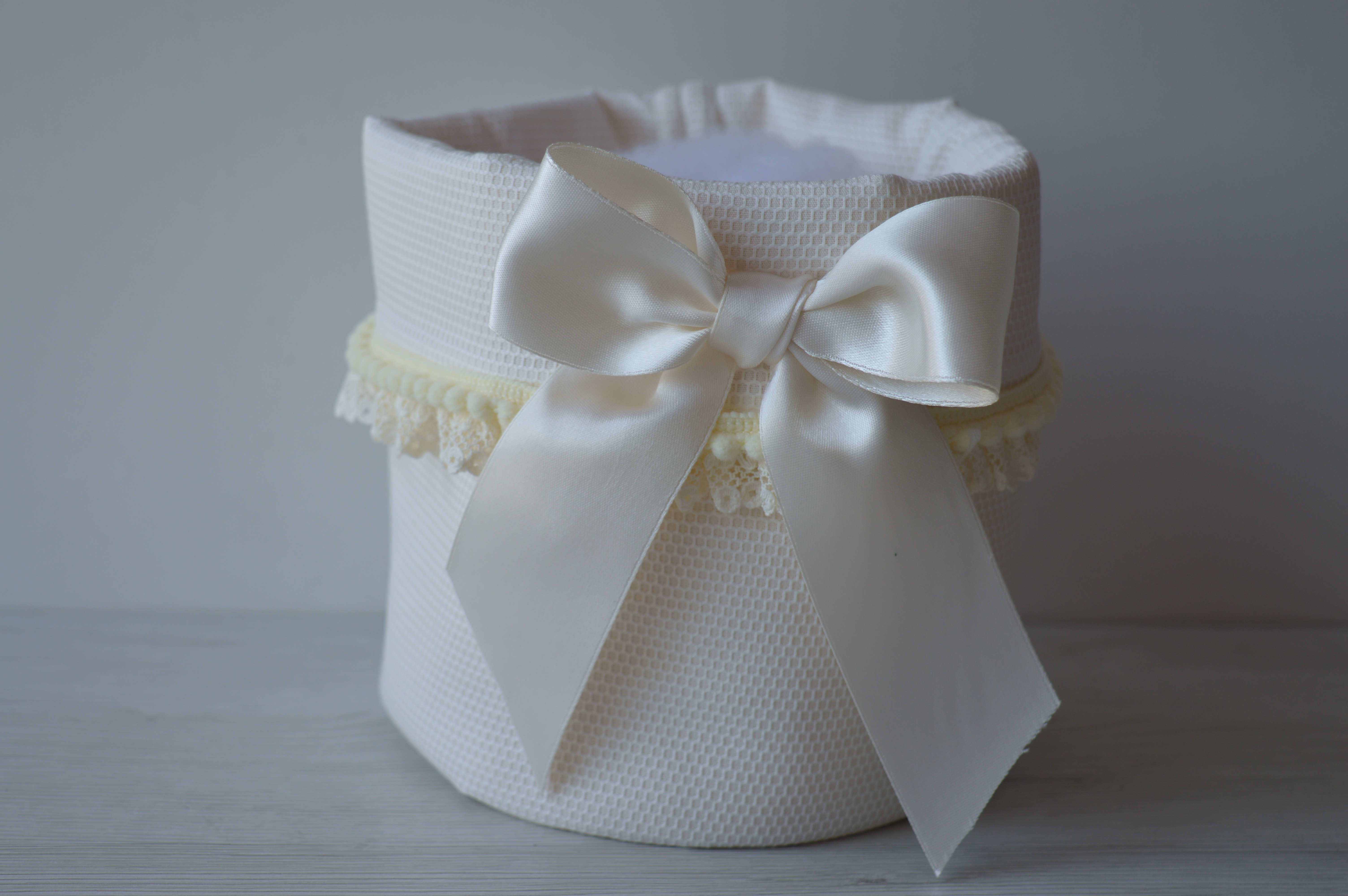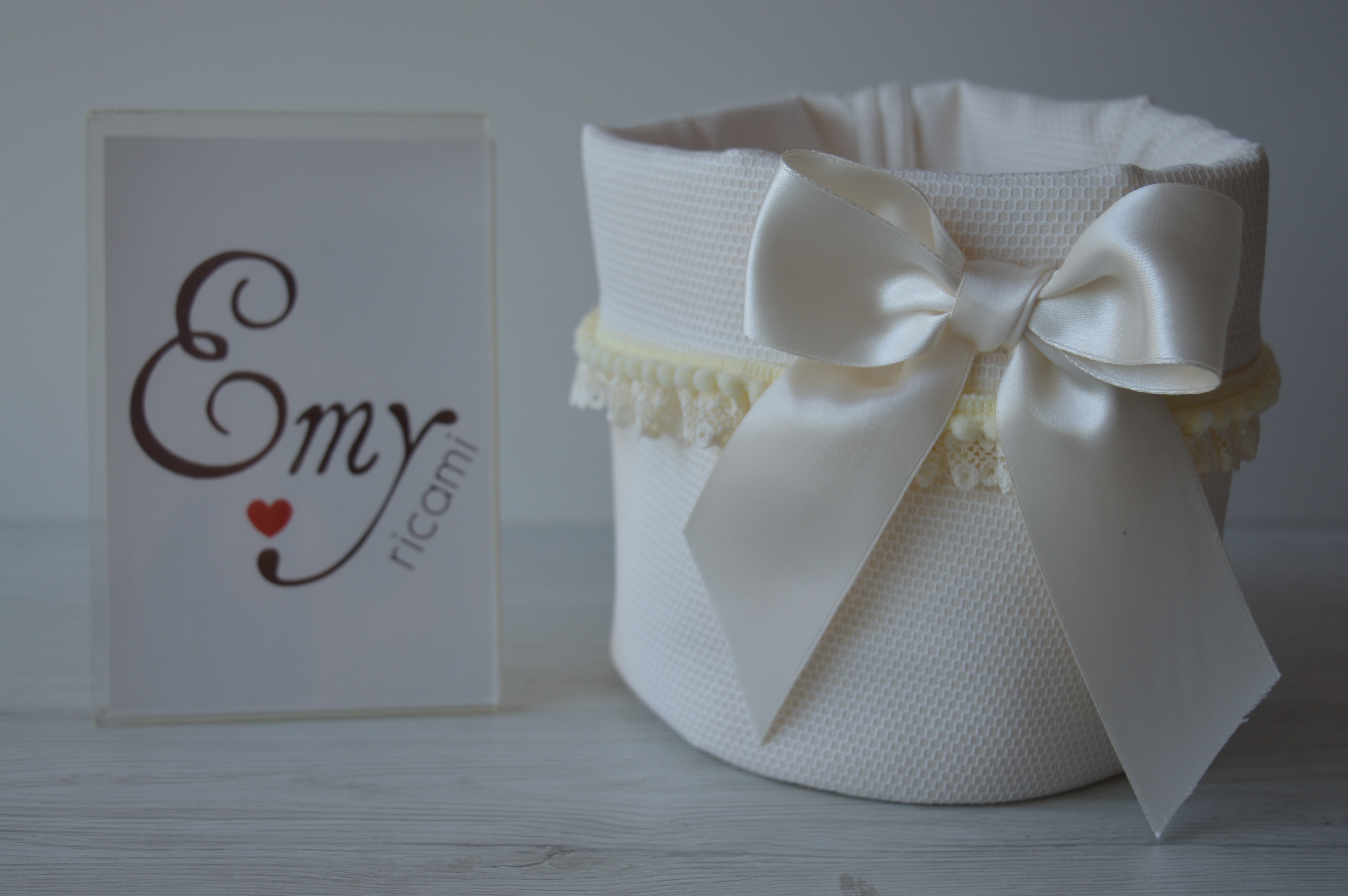 PORTA CONFETTI-PRODOTTI-LAVETTE ECC... COMPOSIZIONE 100% COTONE PIQUET COLORE AVORIO MIS LARGO CM 16X 16 ALTO LAVORAZIONE ARTIGIANALE DI EMY RICAMI SU RICHIESTA è POSSIBILE ANCHE PERSONALIZZARLO CONTATTARE AI NOSTRI INFO