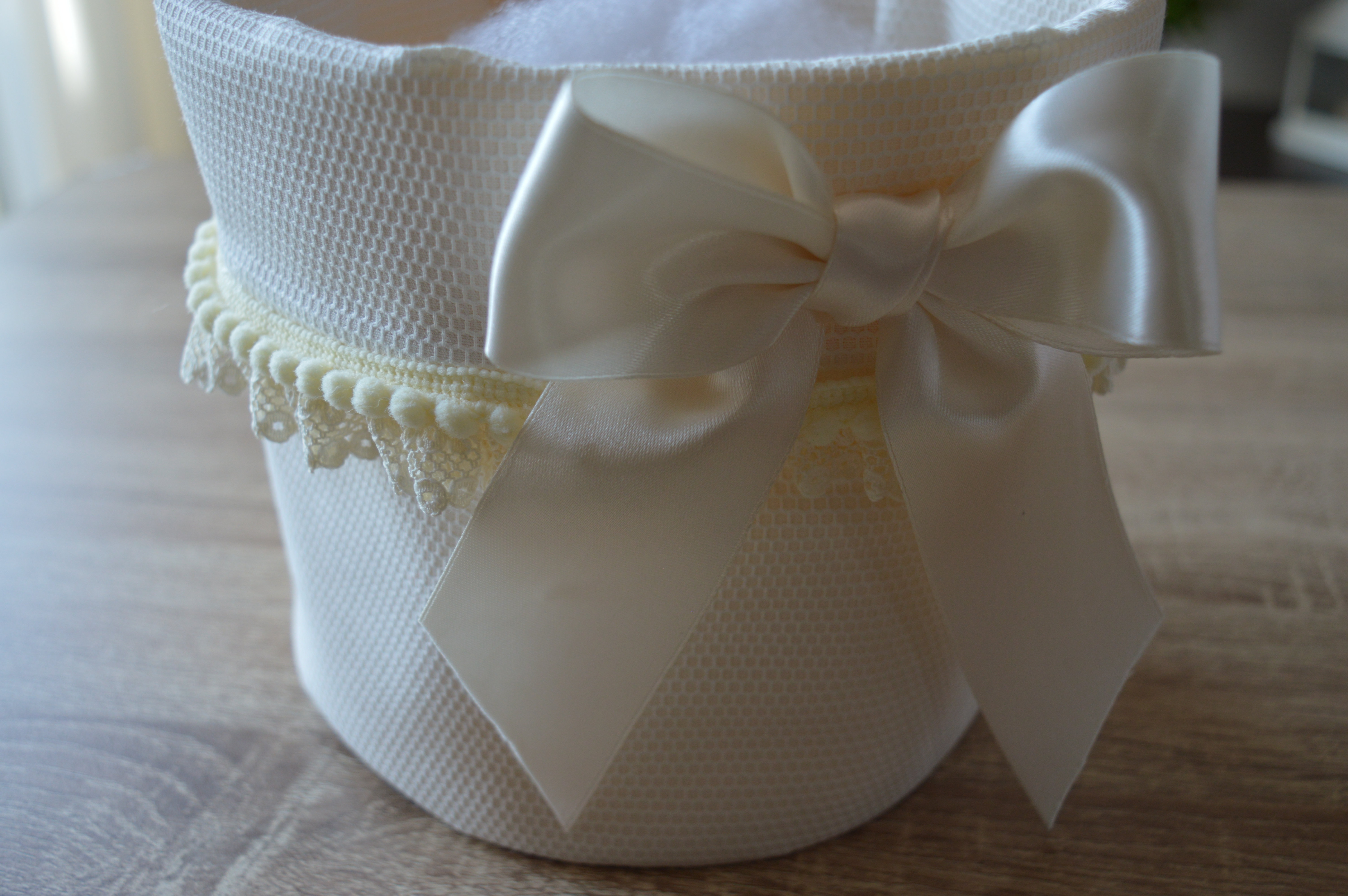 PORTA CONFETTI-PRODOTTI-LAVETTE ECC... COMPOSIZIONE 100% COTONE PIQUET COLORE AVORIO MIS LARGO CM 16X 16 ALTO LAVORAZIONE ARTIGIANALE DI EMY RICAMI SU RICHIESTA è POSSIBILE ANCHE PERSONALIZZARLO CONTATTARE AI NOSTRI INFO