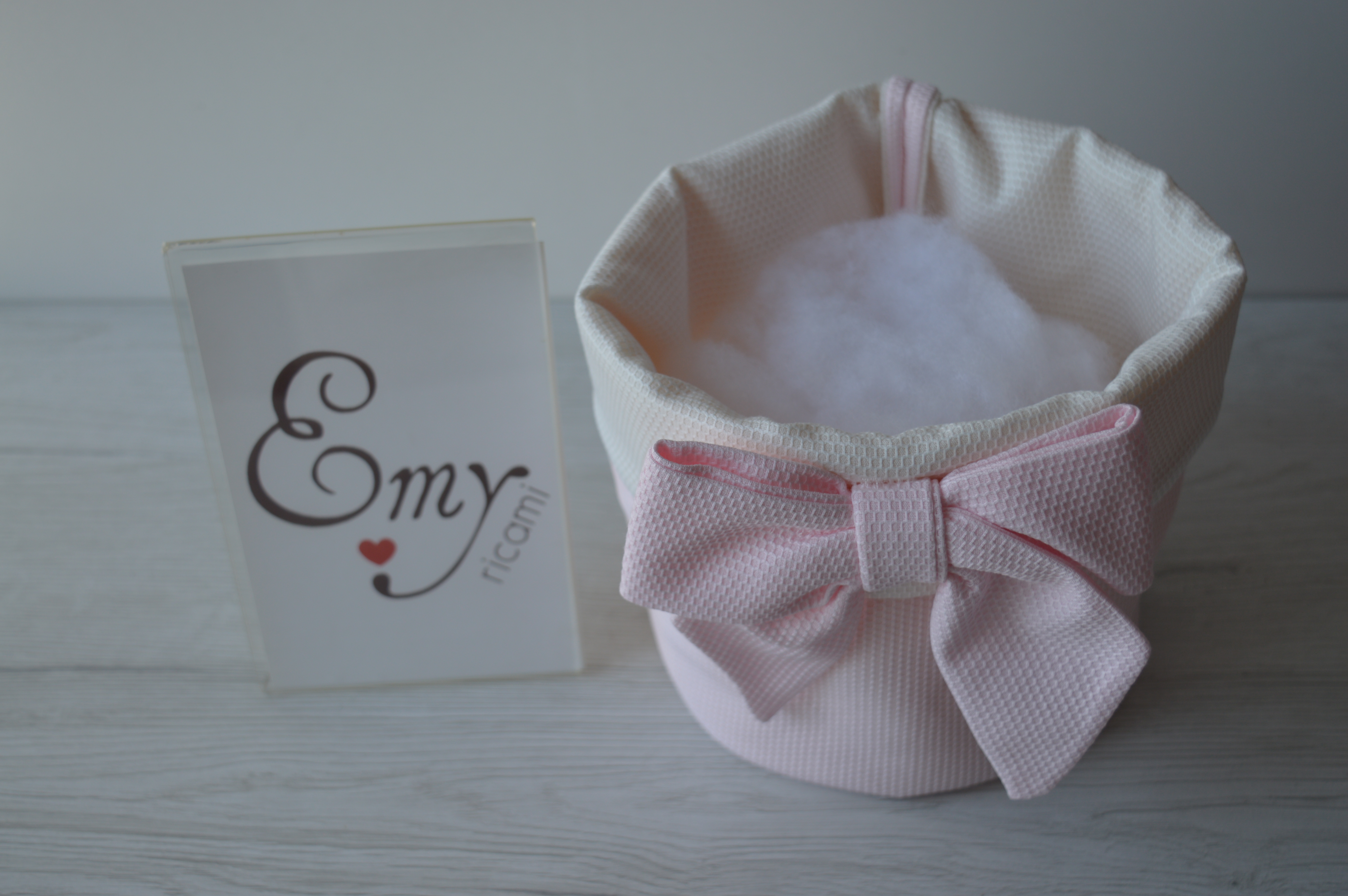 PORTA CONFETTI-PRODOTTI-LAVETTE ECC... COMPOSIZIONE 100% COTONE PIQUET COLORE AVORIO E ROSA MIS LARGO CM 16X 16 ALTO LAVORAZIONE ARTIGIANALE DI EMY RICAMI SU RICHIESTA è POSSIBILE ANCHE PERSONALIZZARLO CONTATTARE AI NOSTRI INFO