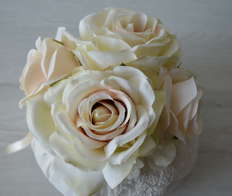 puff artigianale di emy ricami in cotone piquet con rose e ortensie e pizzo rebrodè composizione interno ovatta 100% poliestere esterno 100% cotone piquet colore avorio dimensioni diametro cm 20X20 alta peso gr 330