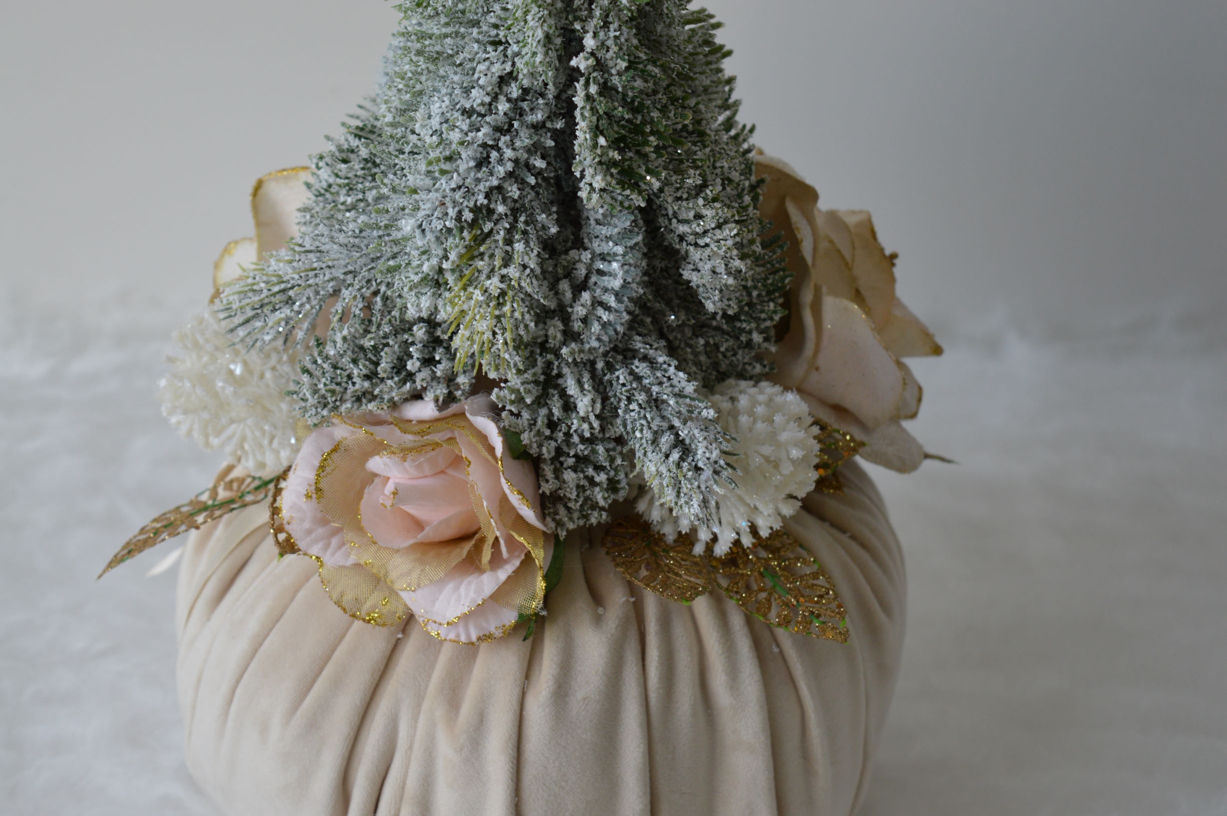 PUFF ARTIGIANALE DI EMY RICAMI CON ROSE E ALBERO IN VELLUTO COL AVORIO ART LUX