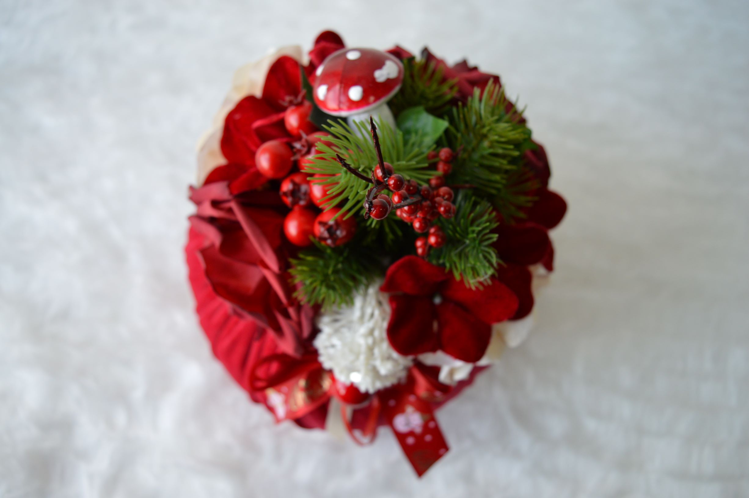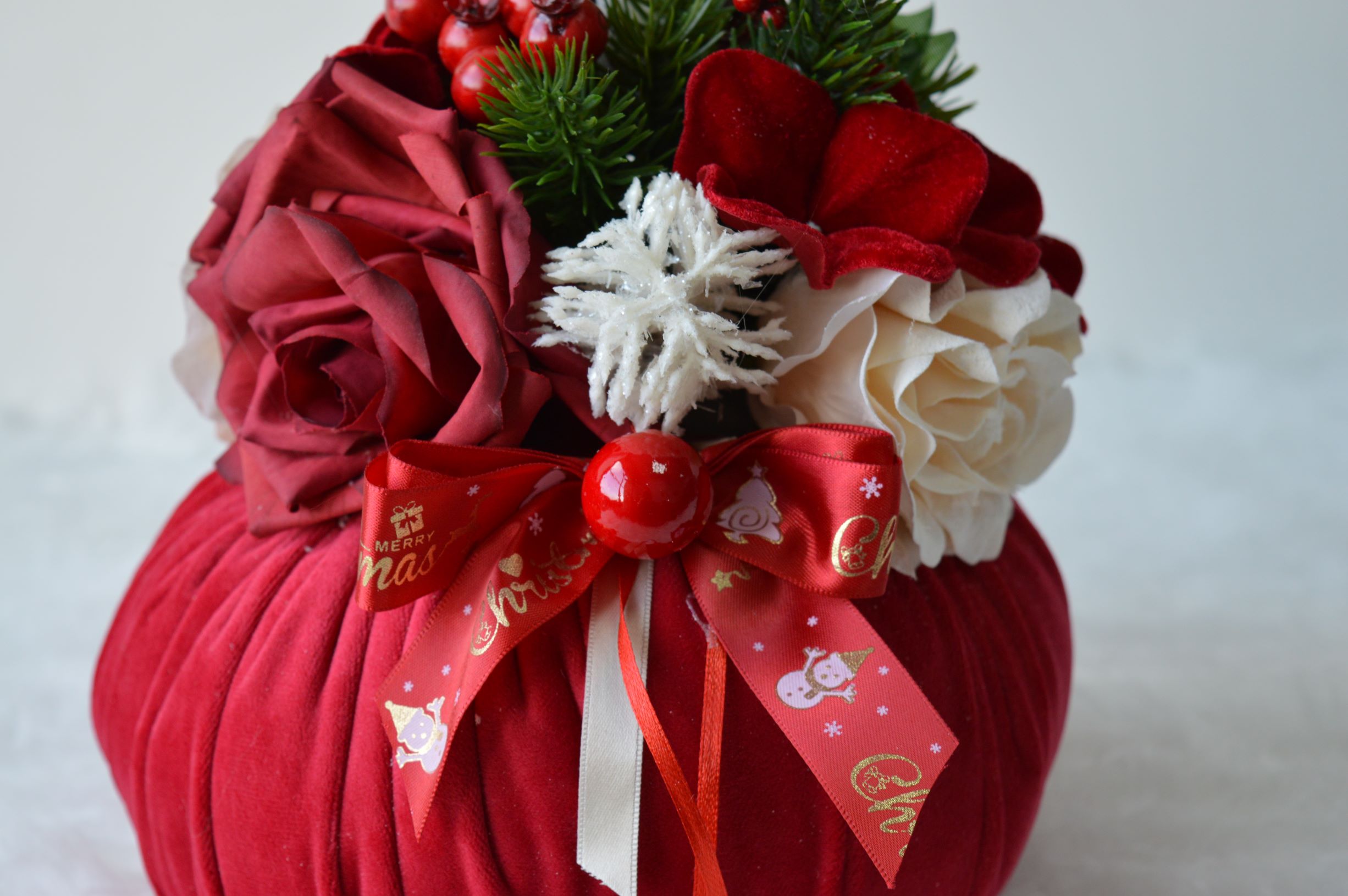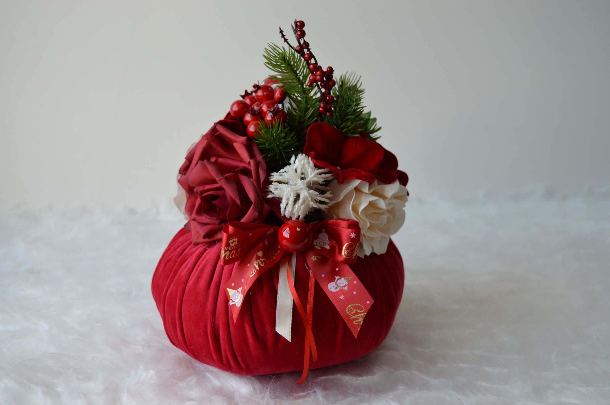 puff artigianale di emy ricami con rose e ortensie in vellutino composizione interno ovatta 100% poliestere esterno velluto poliestere colore rosso dimensioni diametro cm 20x24 alto peso gr 350