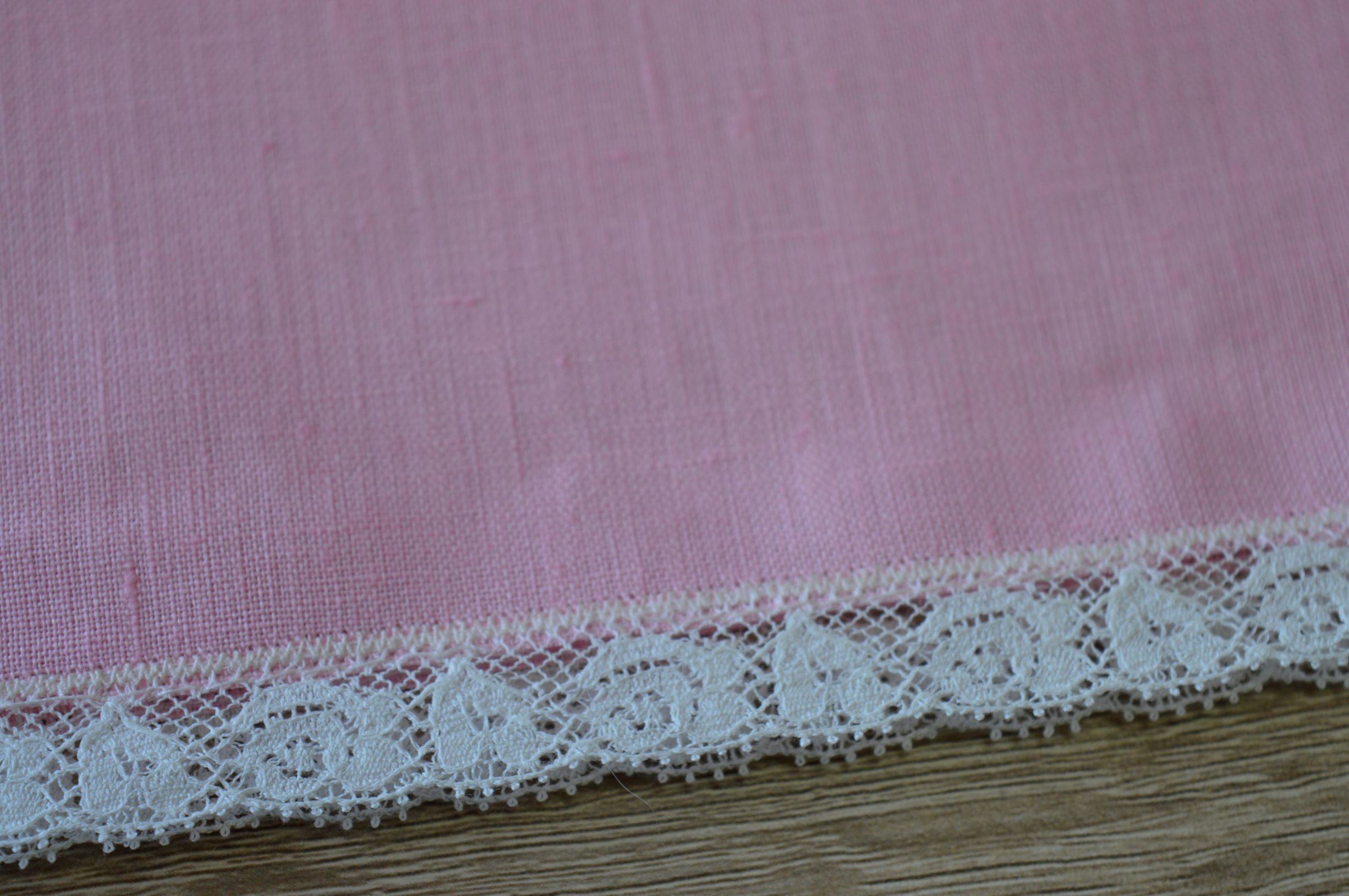 QUADRATO PER NASCITA IN PURO LINO CON PIZZO MIS CM60X70 ART CAVA COL ROSA