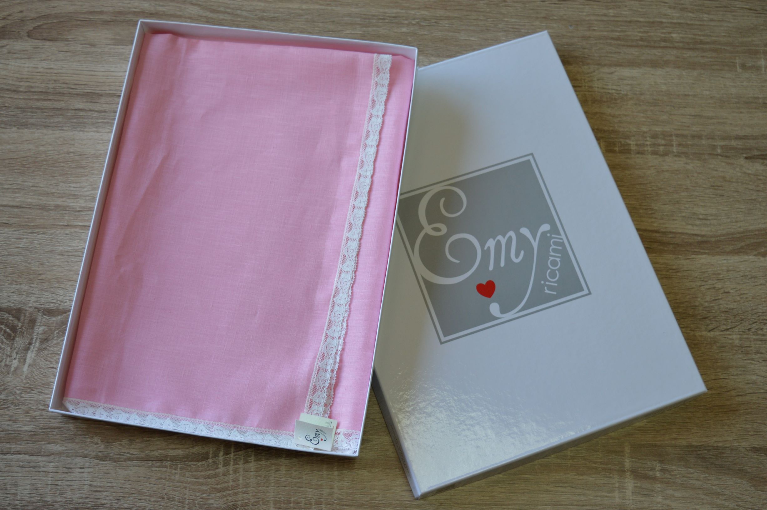 QUADRATO PER NASCITA IN PURO LINO CON PIZZO MIS CM60X70 ART CAVA COL ROSA