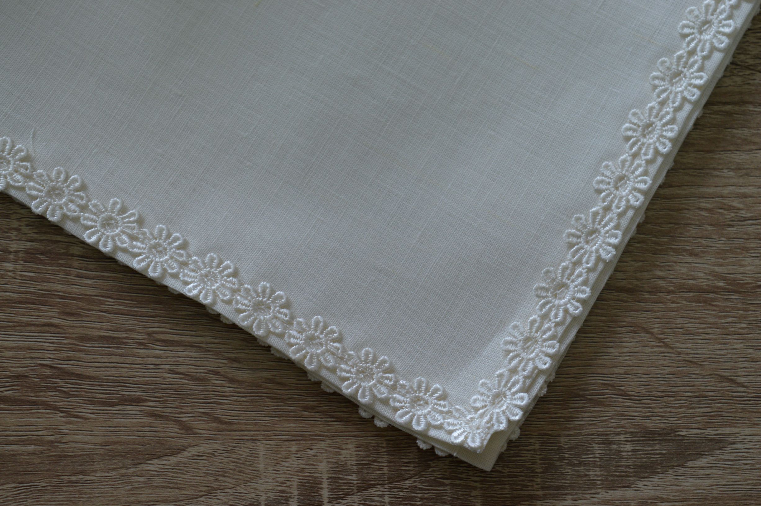 QUADRATO PER NASCITA IN PURO LINO CON PIZZO MIS CM65X50 ART VENEZIA COL AVORIO