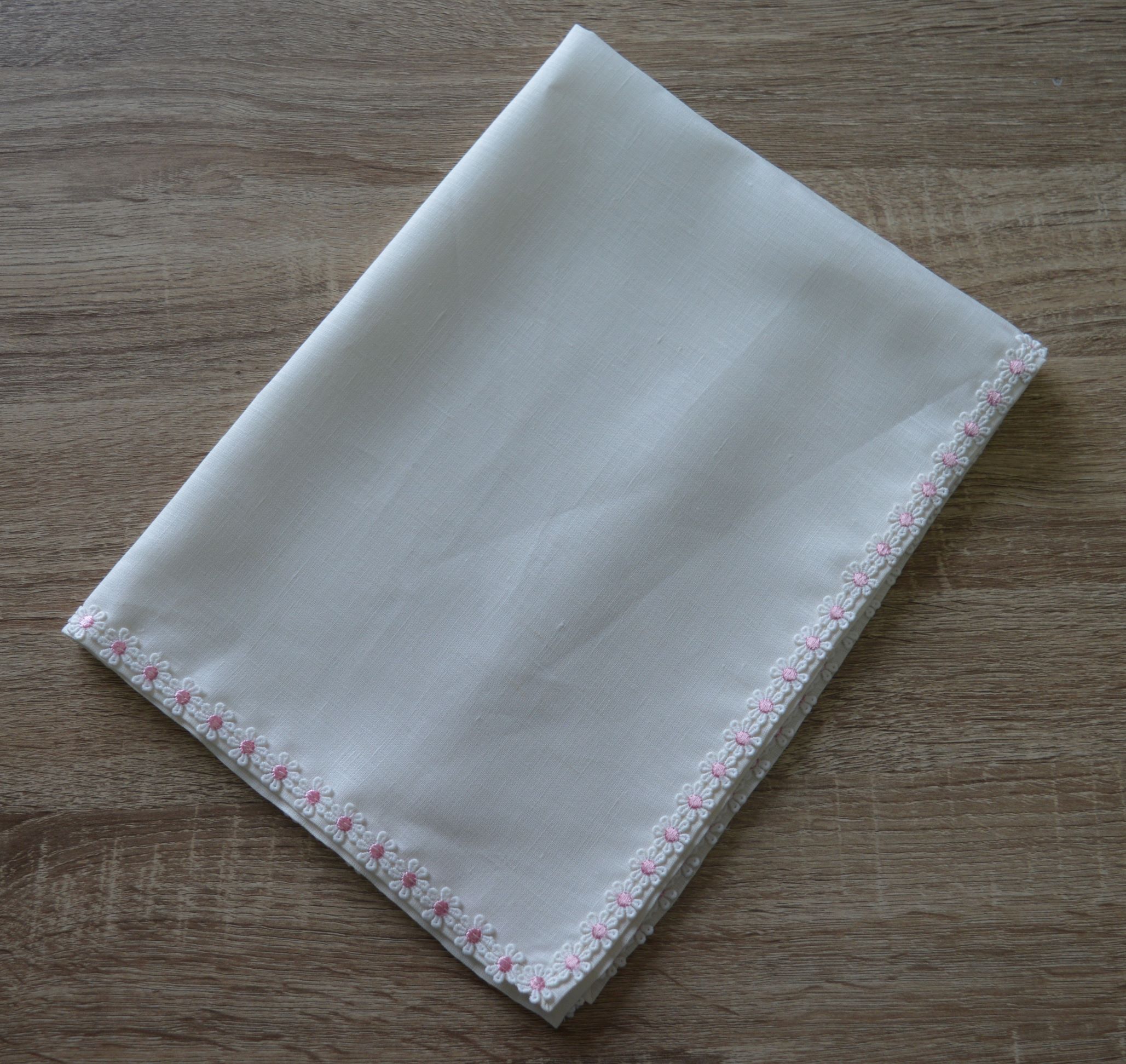 quadrato per nascita in lino rebrode misura cm 65x50 composizione 100% lino rifinito con pizzo rebrode colore avorio e rosa su richiesta possibilta di personalizzazzione