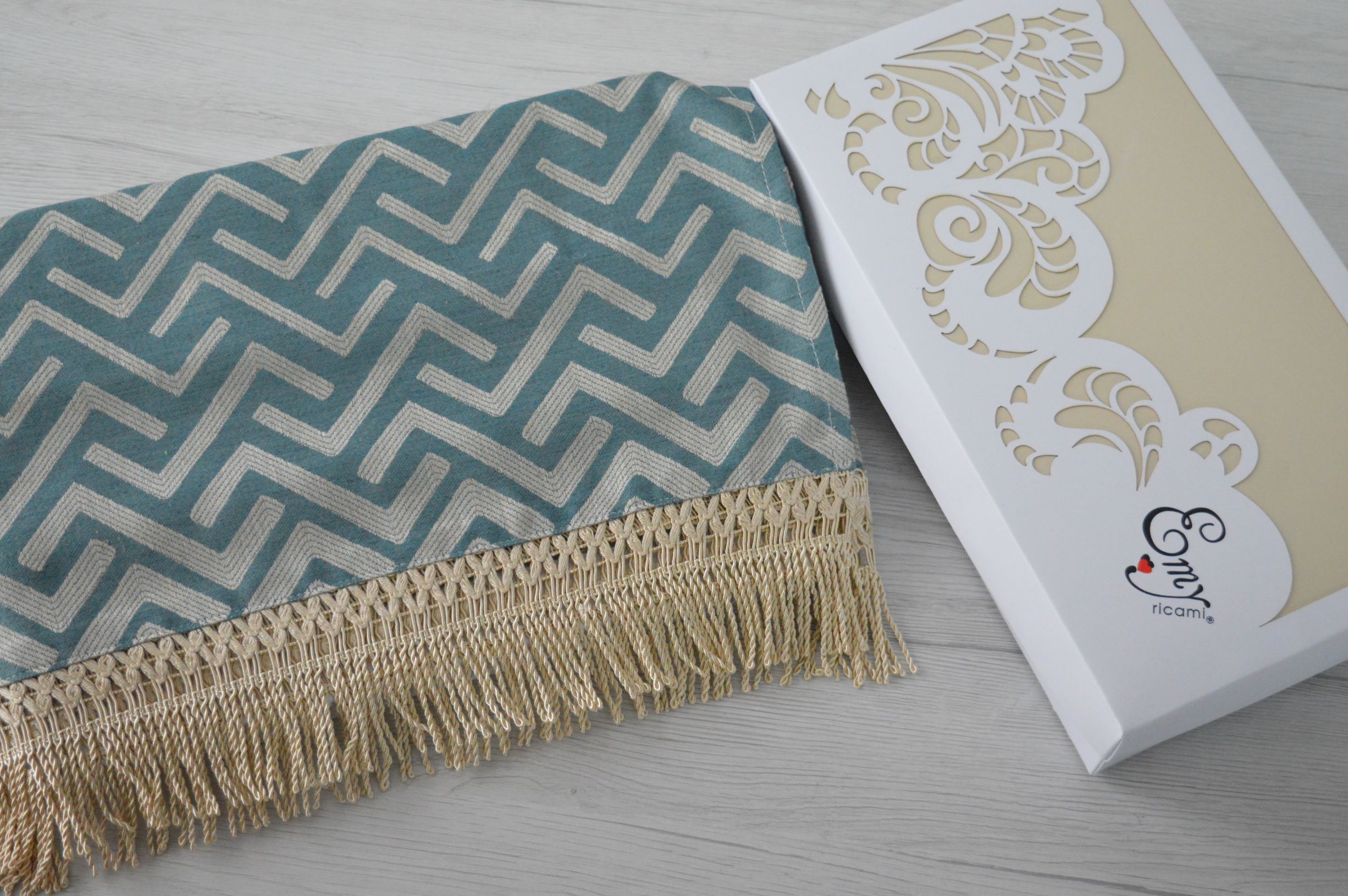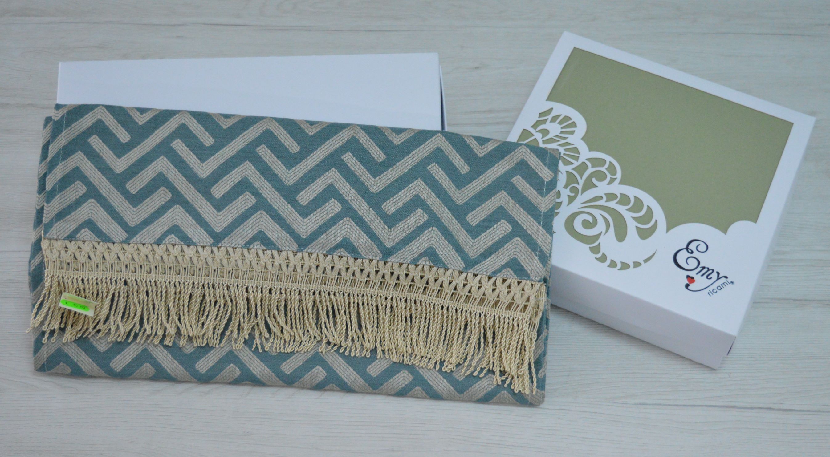 RUNNER ARTIGIANALE CON FRANGIA DI EMY RICAMI COLORE BLU PETROLIO COMPOSIZIONE 65% POLIESTERE 25% VISCOSA 10% LINO FRANGIA 100% POLIESTERE MISURA CM 43X150 SI PUO ANCHE PERSONALIZZARE PER QUALSIASI INFORMAZIONE CONTATTARE AI NOSTRI INFO