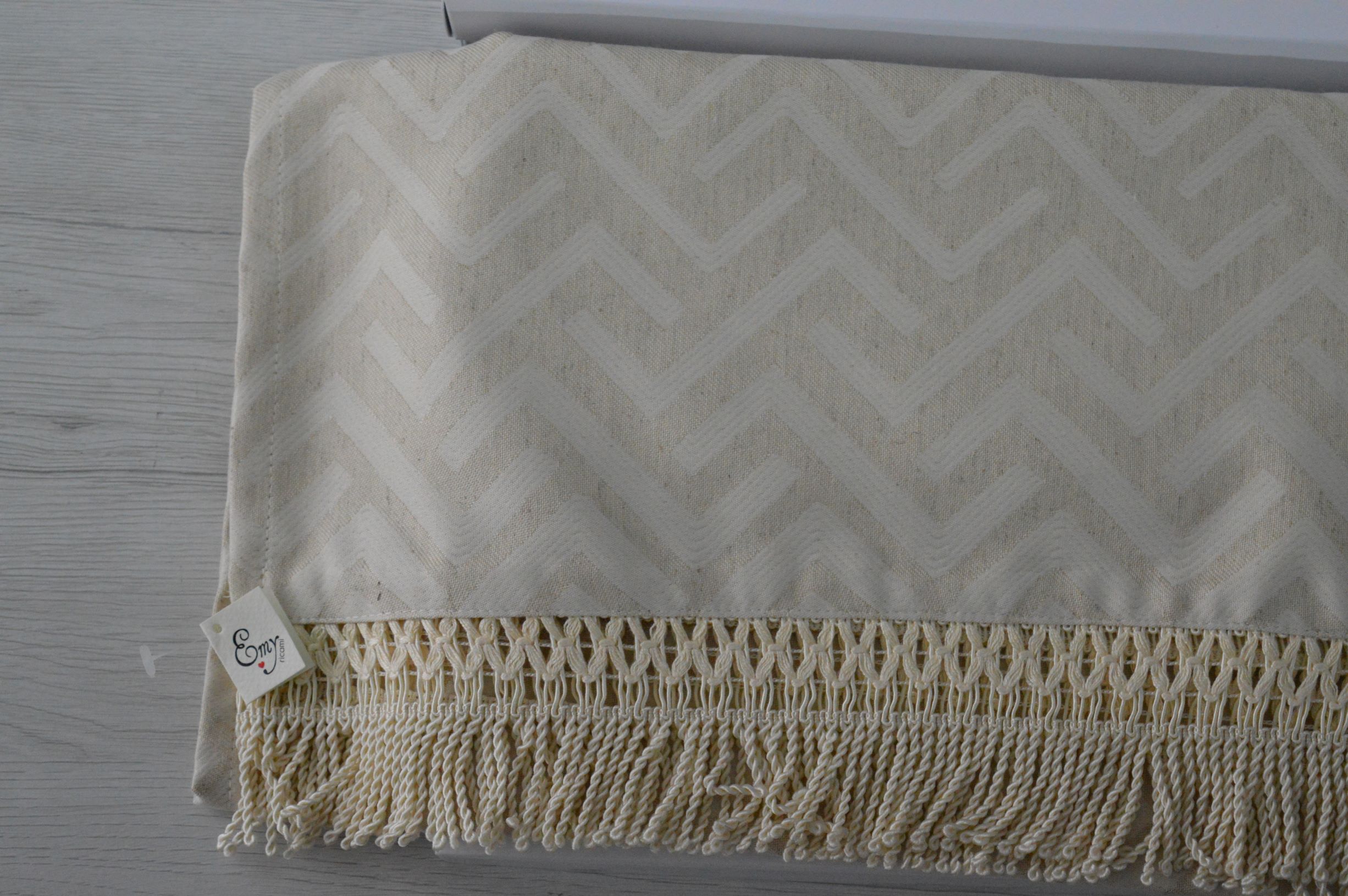 RUNNER ARTIGIANALE CON FRANGIA DI EMY RICAMI COLORE AVORIO E TORTORA COMPOSIZIONE 65% POLIESTERE 25% VISCOSA 10% LINO FRANGIA 100% POLIESTERE MISURA CM 45X160 SI PUO ANCHE PERSONALIZZARE PER QUALSIASI INFORMAZIONE CONTATTARE AI NOSTRI INFO