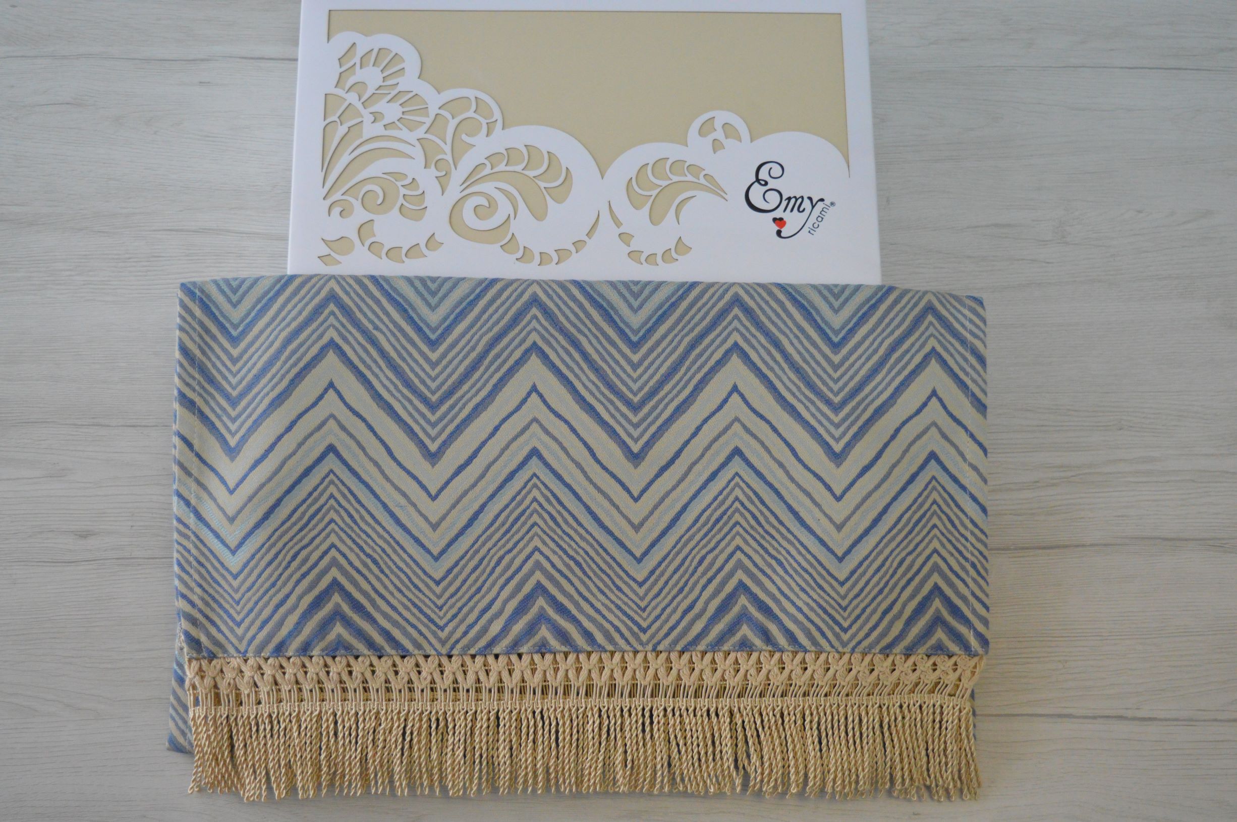 RUNNER ARTIGIANALE CON FRANGIA DI EMY RICAMI COLORE AZZURRO COMPOSIZIONE 46 % COTONE 36% POLIESTERE 18% VISCOSA FRANGIA 100% POLIESTERE MISURA CM 48X115 SI PUO ANCHE PERSONALIZZARE PER QUALSIASI INFORMAZIONE CONTATTARE AI NOSTRI INFO