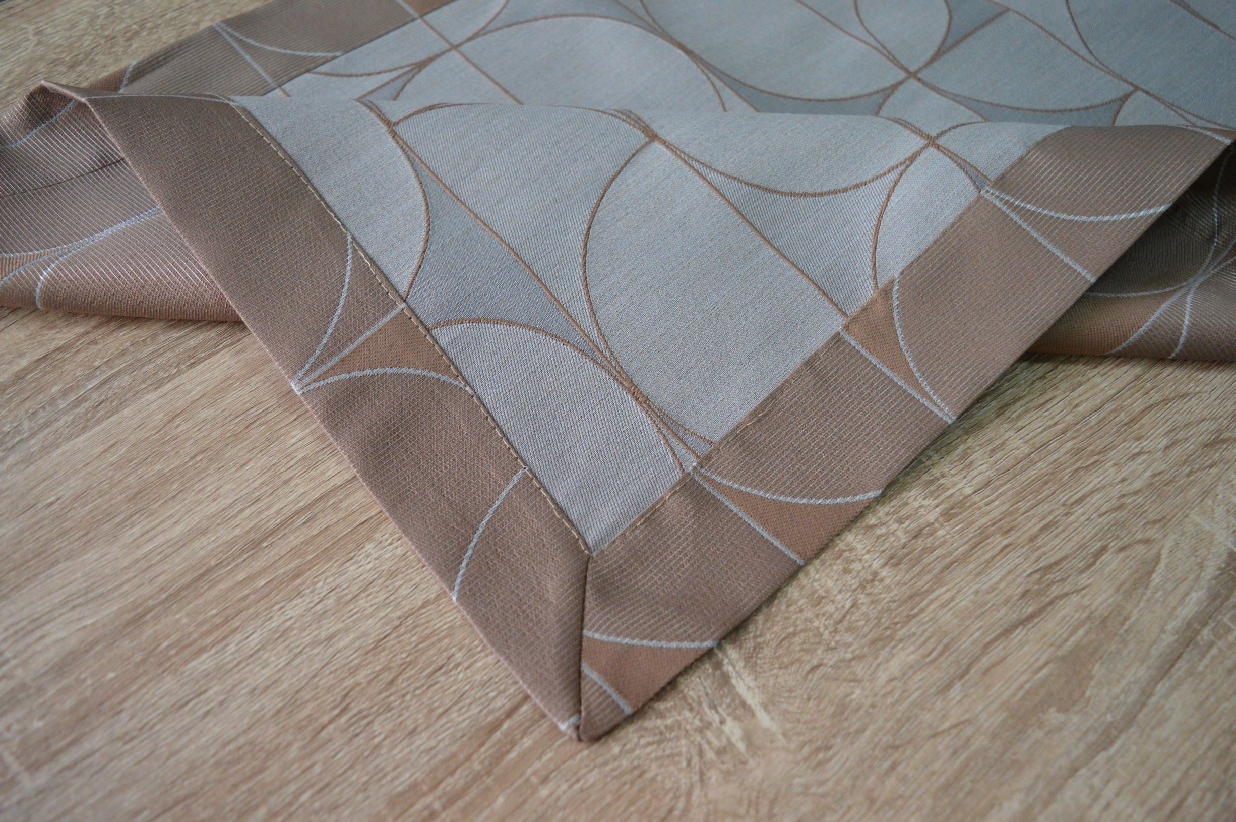 RUNNER ARTIGIANALE CON ANGOLI SQUADRATI DI EMY RICAMI COLORE MARRONE E FANGO COMPOSIZIONE 46 % COTONE 36% POLIESTERE 18% VISCOSA MISURA CM 51X77