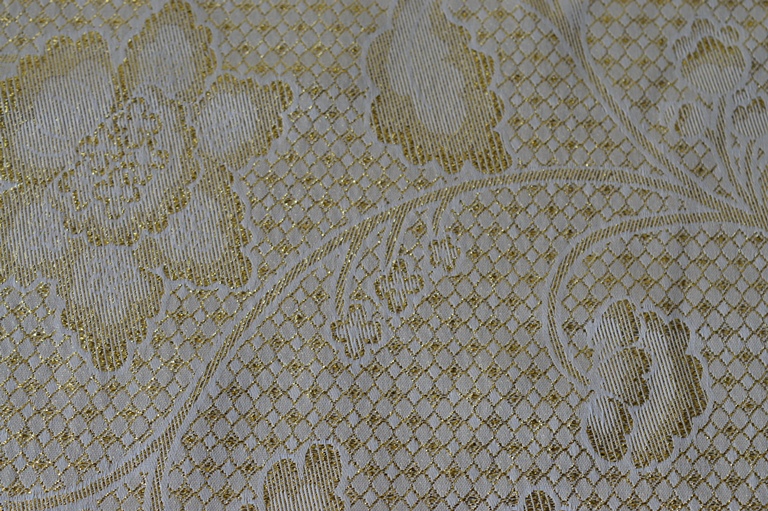 TAPPETO SERVIZIO DA TAVOLA NATALIZIO MISURA CM 155X330 FANTASIA RAMAGE COLORE ORO COMP.65% POLIESTERE 35% COTONE