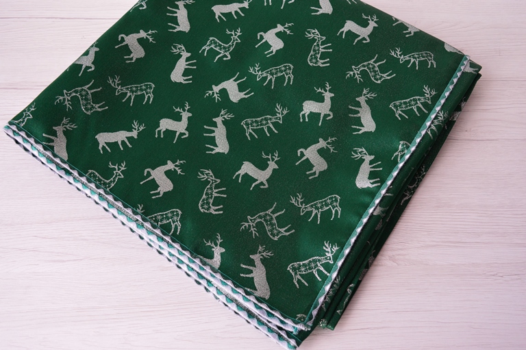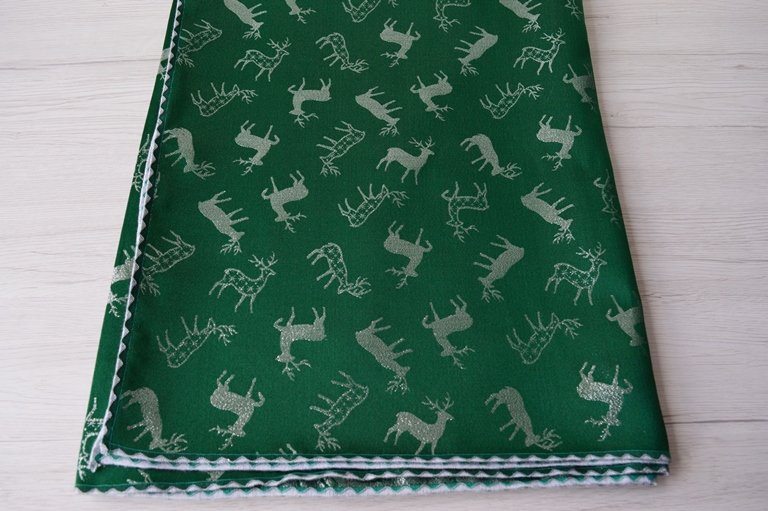 TAPPETO SERVIZIO DA TAVOLA NATALIZIO MISURA 145X295 COLORE VERDE NATALE FANTASIA RENNE COMP. 65% POLIESTERE 35% COTONE