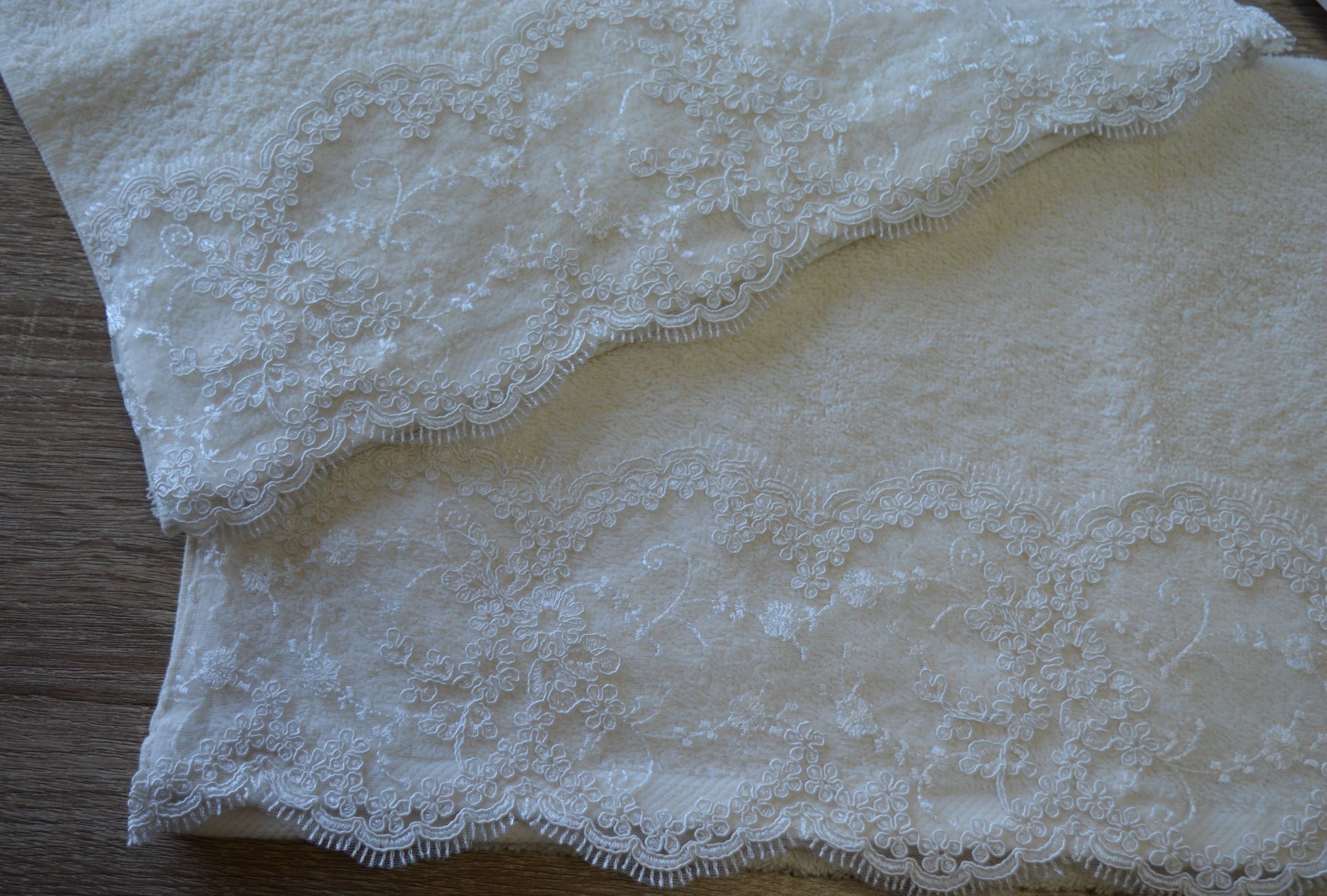 coppia asciugamano artigianale di emy ricami colore avorio composizione 100% cotone misura ospite cm 38x58 misura viso cm 59x110 peso 500gr al mtq lavaggio 40° rifinita in basso con pizzo rebrode e confezionata in un elegante scatola regalo personalizzata emy ricami per grossi quantivi o per un evento contattare ai nostri info.