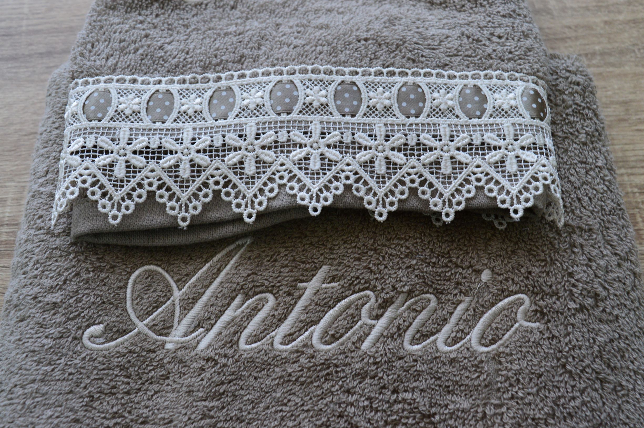 COPPIA ASCIUGAMANI IN SPUGNA PERSONALIZZATA  CON NOME RICAMATO A MACCHINA ANTONIO