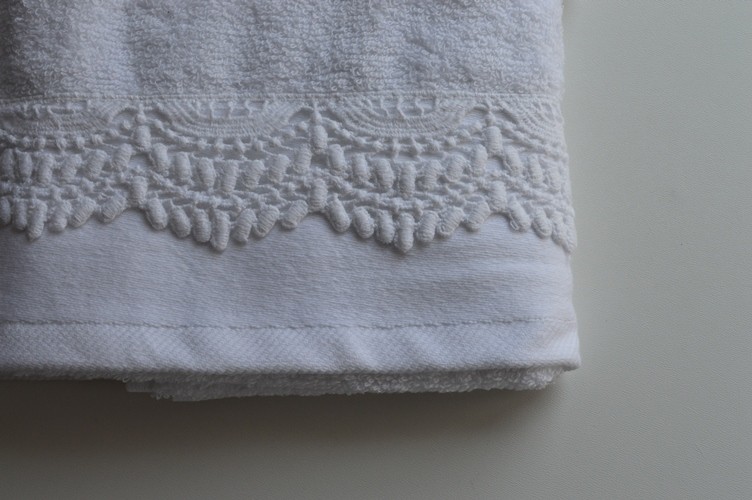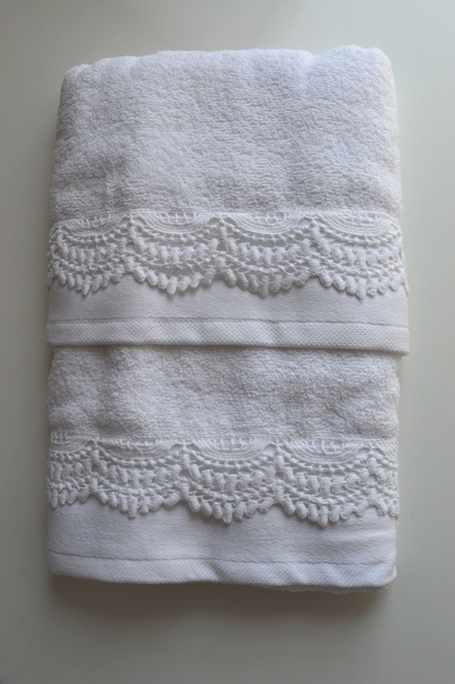 SET ASCIUGAMANI SPUGNA UNO PIU' UNO COLORE BIANCO CON PIZZO MACRAME ART MAIA